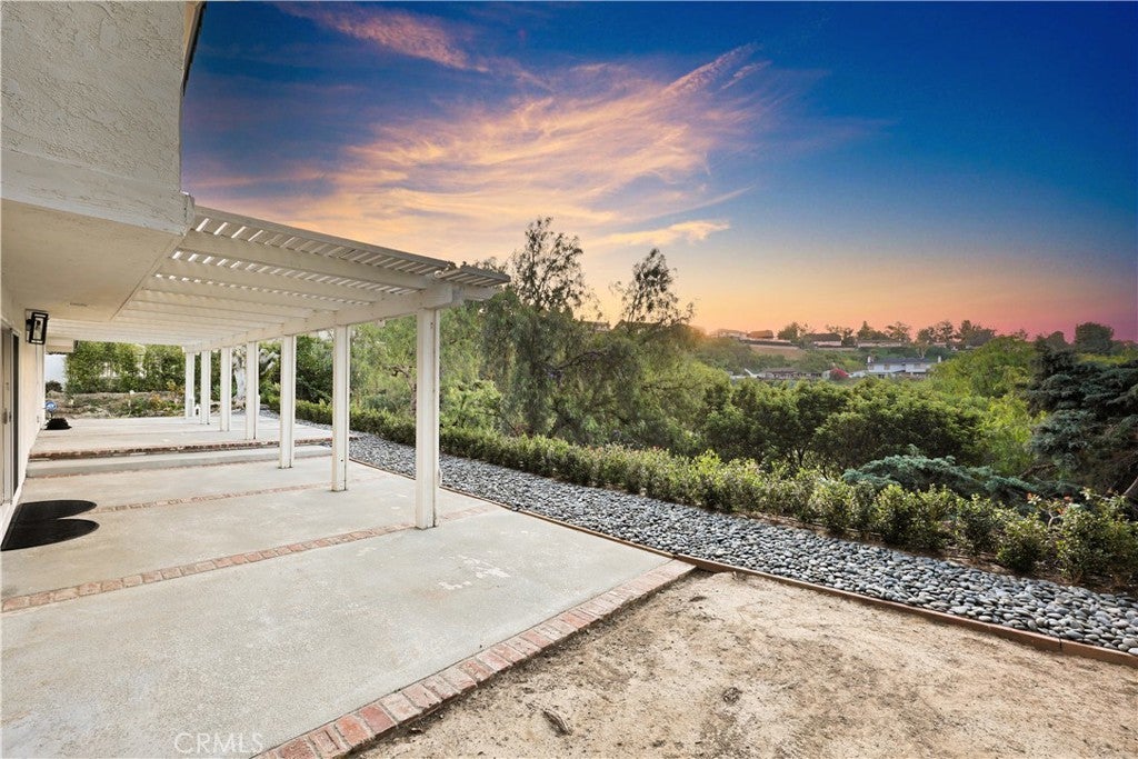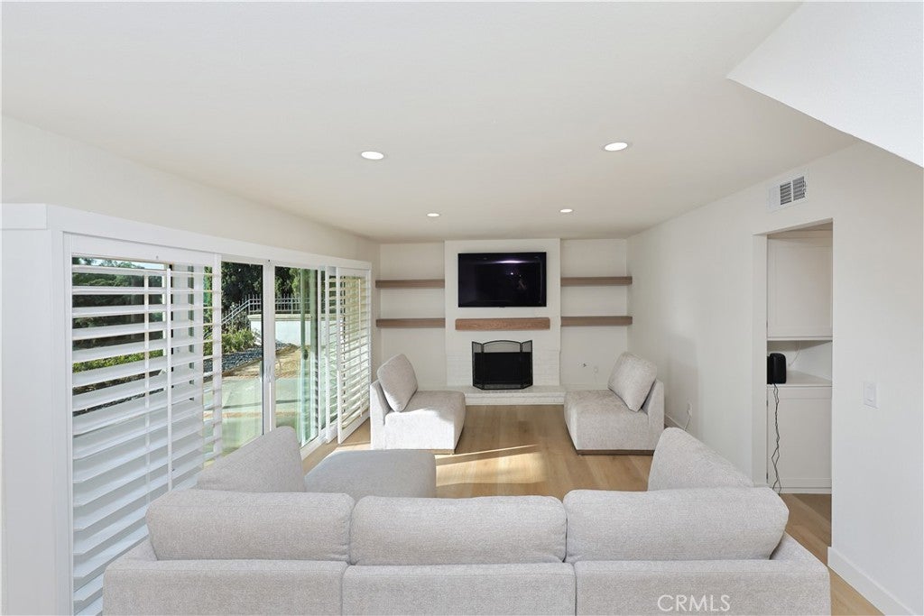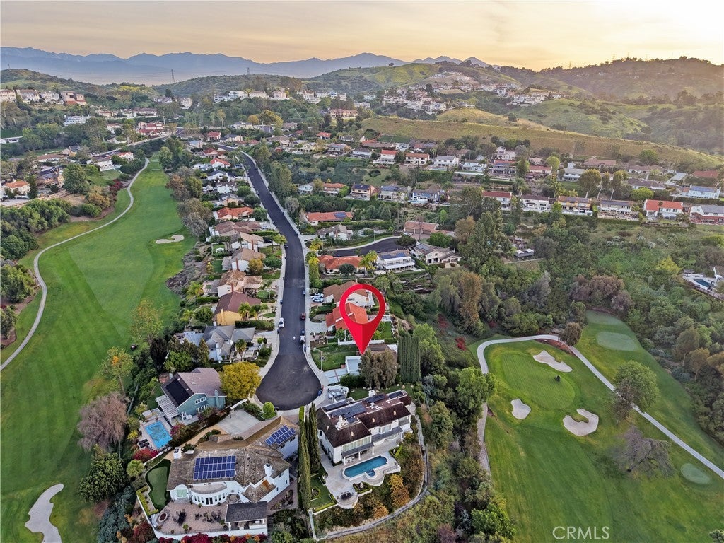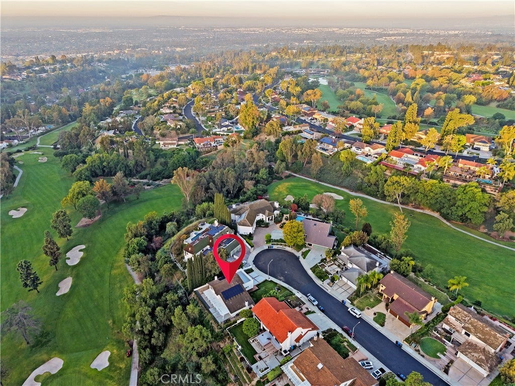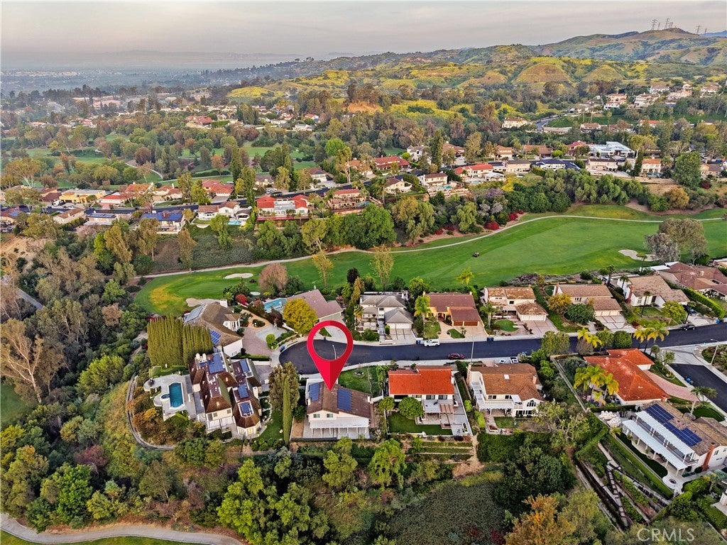 Beautiful 2-story home nestled at the end of a cul-de-sac overlooking the 5th and 6th holes of the Friendly Hills golf course. The home has an excellent floorplan with four bedrooms (1 downstairs and 3 upstairs), three updated bathrooms, 8 ft high entry doors, high ceilings in entry, living room and family room with fireplace, formal dining room, and recently remodeled kitchen with new custom cabinetry, built-in refrigerator, wide stainless steel range & oven, new dishwasher, and quartz countertops. The primary bedroom has dual closets and a large balcony overlooking the golf course. The primary bathroom includes new dual sinks and tile shower. Other amenities include paid off solar panels, new premium vinyl plank flooring throughout the majority of the home, central air and heat, and a 3 car attached garage.