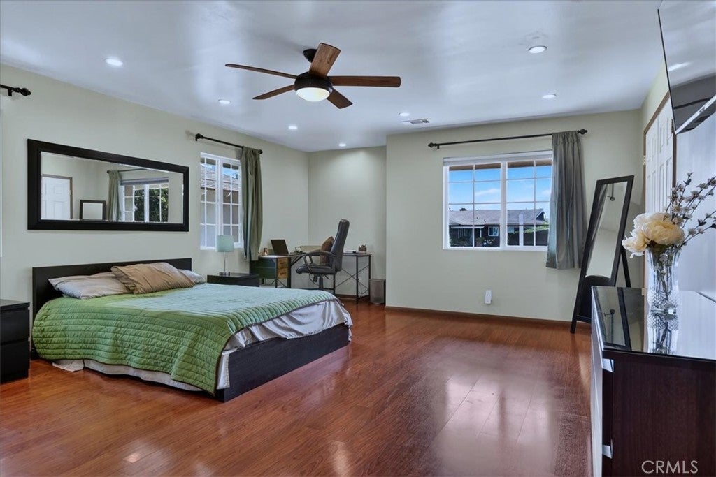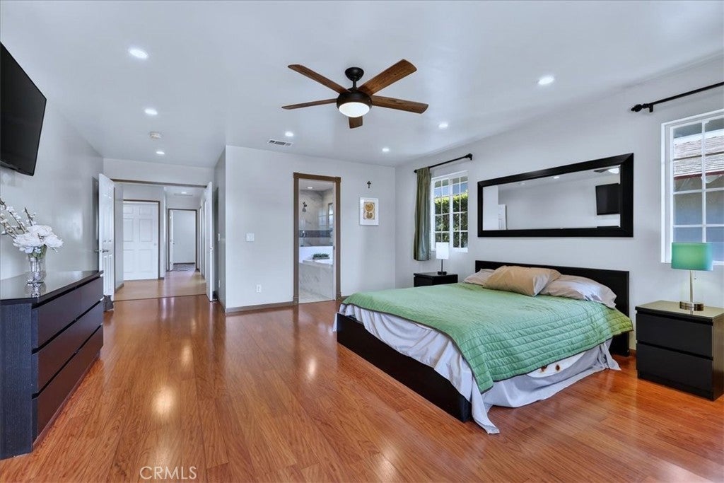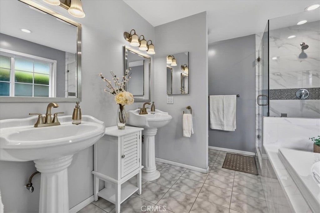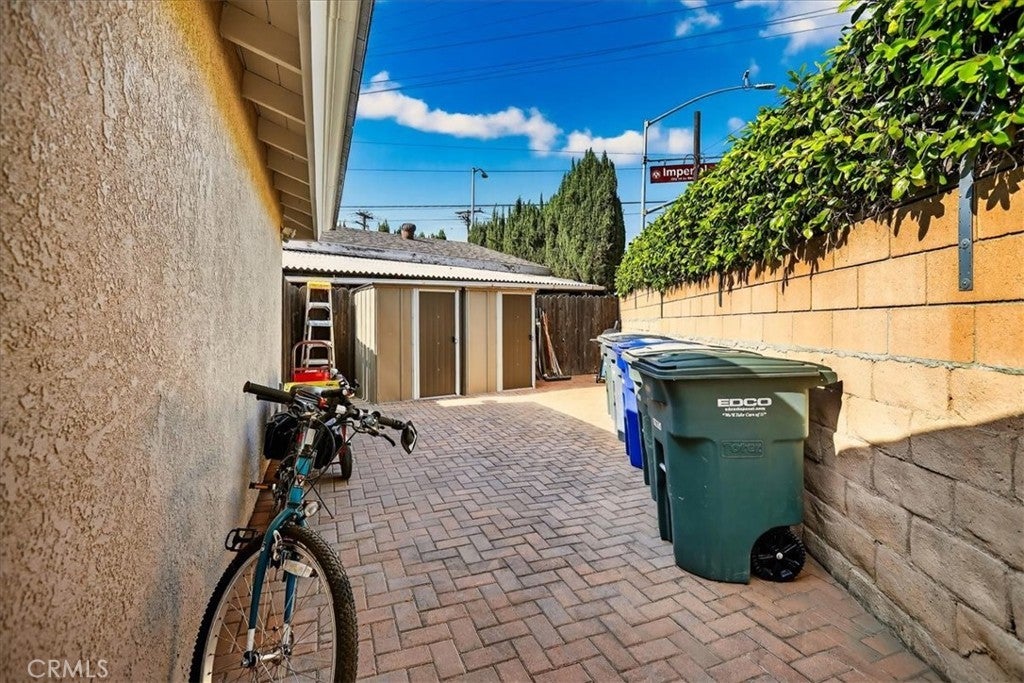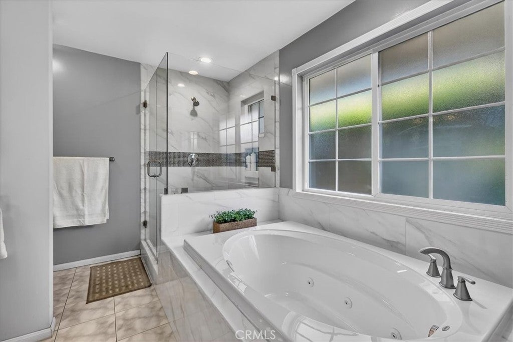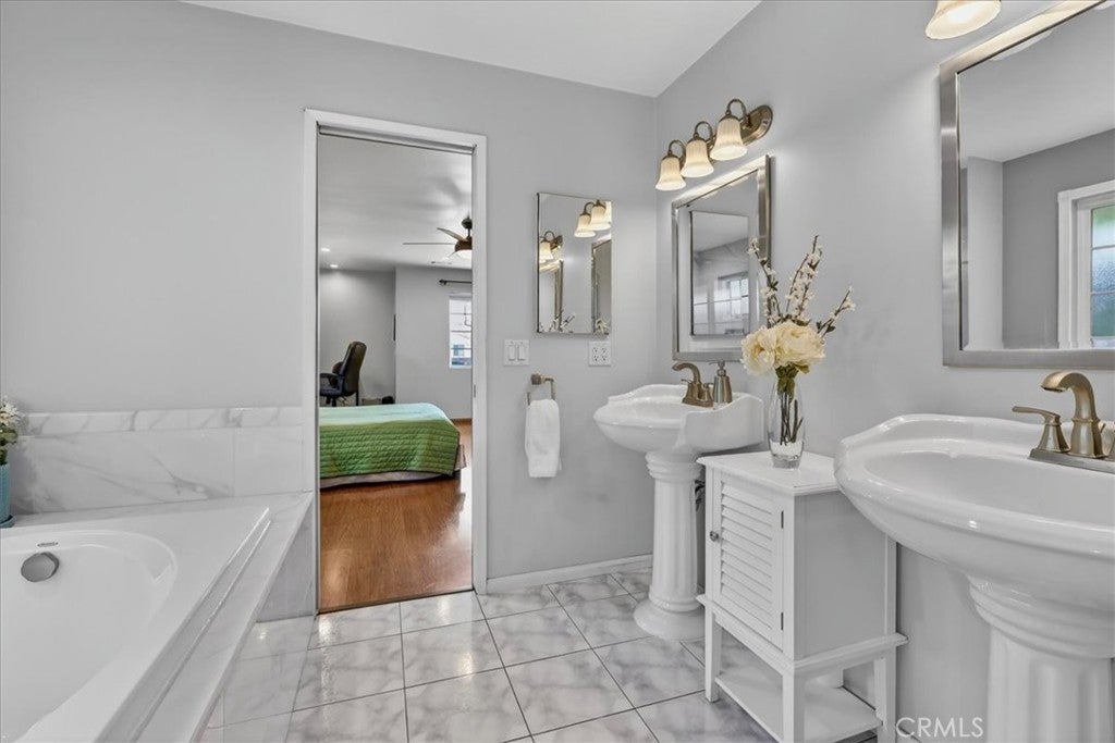 Beautiful home on a quiet cul-de-sac in the highly desirable Green Hills neighborhood, this home welcomes you with low-maintenance landscaping, plentiful driveway parking, and the convenience of an electric vehicle charger powered by an upgraded 200-amp electrical service. A gated driveway also offers secure RV parking. Step inside to discover an open-concept layout where the living room, kitchen, and family room flow together seamlessly. Polished marble flooring flows throughout the living room, where surround sound speakers are discreetly built into the ceiling. The spacious kitchen features granite countertops, a large island with a microwave oven and a built-in beverage refrigerator. The expansive family room is centered around a fireplace accented by a stunning porcelain tile wall. The primary suite is a true retreat, offering ample room for a home office area, a generous walk-in closet with built-in shelving and drawers, and a spa-like ensuite bathroom complete with a Jacuzzi tub, dual pedestal sinks, and a spacious shower. All additional bedrooms feature ceiling fans and LED recessed lighting, and every bathroom has been thoughtfully upgraded. Step outside to your private backyard oasis. Accessed through the family room, the space features a charming pergola, low maintenance landscaping, and a sparkling swimming pool heated by solar. Additional highlights include a two-car detached garage with abundant overhead storage and cabinetry, plus a gated storage area behind the garage with two metal sheds for even more space. Thoughtful upgrades include freshly painted exterior, LED recessed lighting throughout, copper plumbing upgrades, dimmable light switches throughout, and a smart touchscreen thermostat. The property is located very close to award winning schools, many parks, large shopping center with a gym and movie theater, La Mirada Golf Course, Splash, La Mirada Theater For The Performing Arts and it is also steps away from Biola University! This home isn't just beautiful, it's perfectly positioned. With everything you need in a great neighborhood!