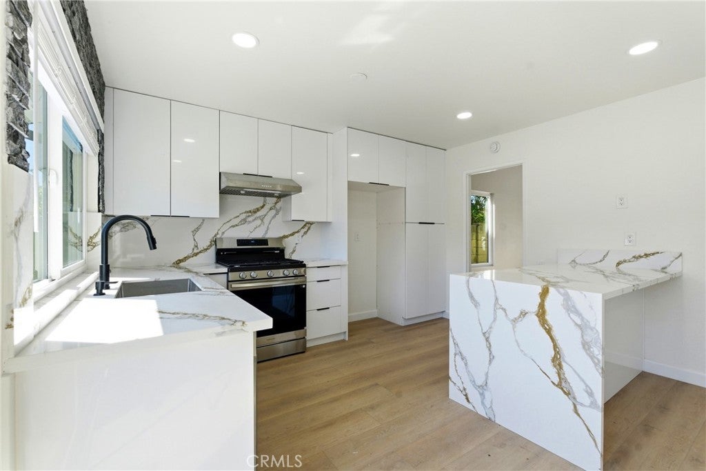 Completely remodeled and move-in ready, this stunning Cerritos home showcases quality craftsmanship and high-end finishes throughout. Thoughtfully upgraded with no detail overlooked, the home features elegant stone countertops, a sleek stainless steel sink, and a modern range with matching hood that anchors the beautifully redesigned kitchen. Both bathrooms have been tastefully updated with new vanities and contemporary finishes, while recessed lighting enhances the bright, open feel of the living spaces. Brand new windows provide energy efficiency and abundant natural light, and the new garage door adds to the home’s fresh curb appeal. Situated on a well-proportioned lot in a desirable Cerritos neighborhood and located within the highly sought-after ABC School District, this home offers exceptional value in a prime location known for its strong community appeal and convenient access to shopping, dining, and major freeways. Turnkey, upgraded, and ready for its next owner—this is one you don’t want to miss.