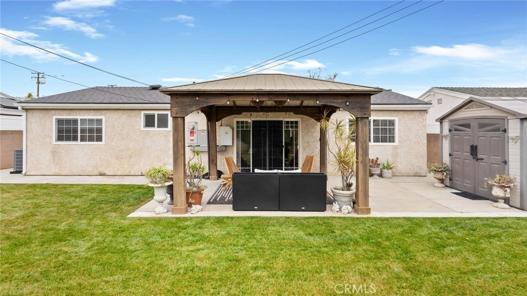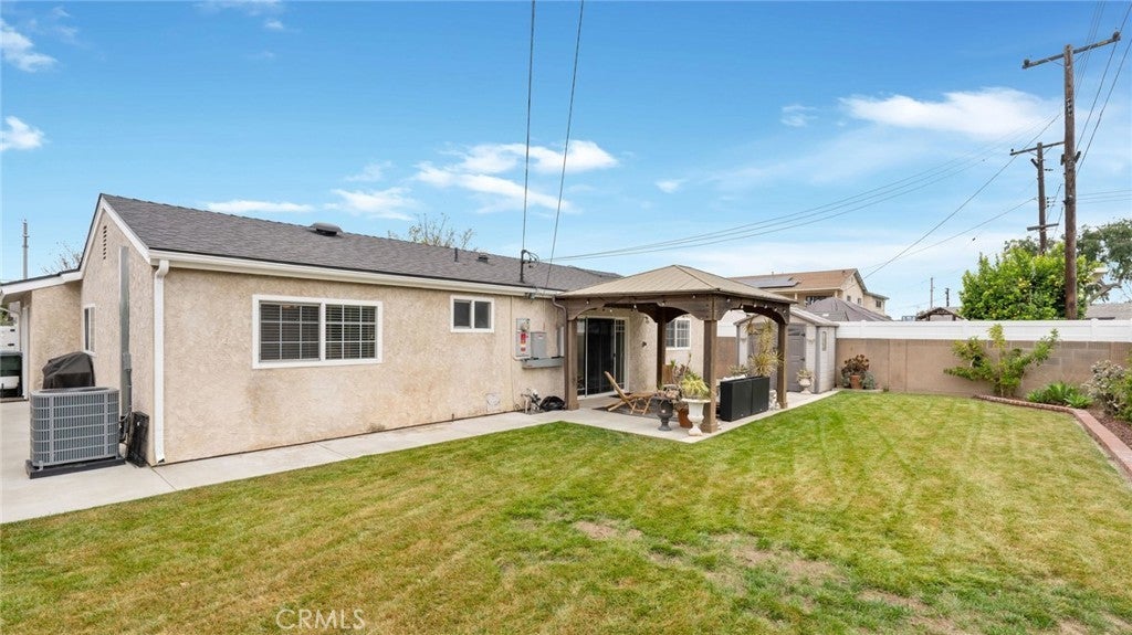 Cypress Prime Location. This charming, turnkey home features 4 spacious bedrooms, 2 full bathrooms, and 1,497 square feet of well-designed living space. The open concept living room, formal dining room, and den are filled with aboundant natural light. The property boasts a one year composition shingle roof and cental air conditioning. The house features dual-pane windows thoughtout. Step through the sliding glass doors to a private retreat with an attractive backyard pavilion, perfect for family gatherings and entertainment. A strong brick wall surronds the back and side yard. The large grass area is pefect for children to play and enjoy Califonia's sunshine. The well-finish two car garage with a lot of cabinets is a perfect man's cave, recreation room, or workshop. It is located in a quiet cul-de-sac. The area boasts excellent schools, including Lexington, Landell, and the highly acclaimed Oxford Academy, which admits students subject to testing and acceptance.