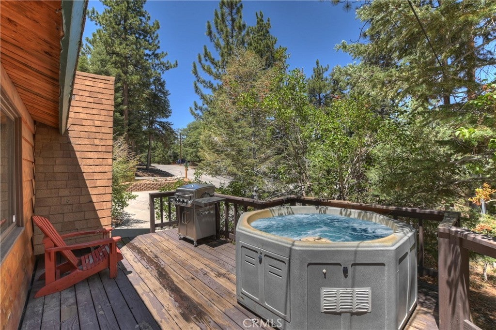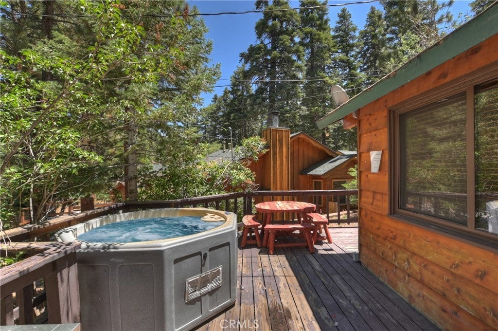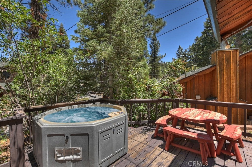 Fully furnished and ready to enjoy! Welcome to this charming mountain cabin located in the desirable Moonridge area of Big Bear — the perfect escape for a second home or short-term rental opportunity. The cabin is being sold with all furniture, décor, and a private hot tub, making it easy to start enjoying or renting right away. Inside, you’ll find warm wood details, a brick fireplace, and an open living space designed for comfort. Step outside to a spacious deck surrounded by trees, offering a peaceful setting to relax or entertain. Conveniently located near Bear Mountain Resort, the zoo, golf course, and Big Bear Lake, this property provides both accessibility and a true mountain feel. Whether you’re looking for a personal getaway or an investment, this cabin offers a great opportunity to own in one of Big Bear’s most popular areas.
