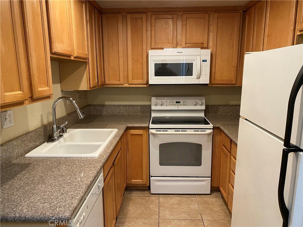 Two-story Townhouse with attached 2-car garage. 3 bedrooms, 2.5 baths. All bedrooms are upstairs. Wood laminate floors in living room, dining, and halls. Tile floors in kitchen and baths. Kitchen features granite counters, range / oven, microwave, dishwasher, and refrigerator. Laundry hookups in garage. Automatic garage door opener. Ceiling fans. Small private patio. Private deck off master bedroom. Association pool and common area landscaping.