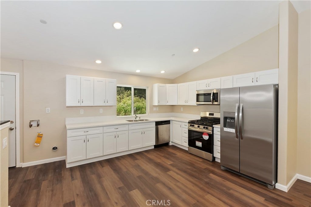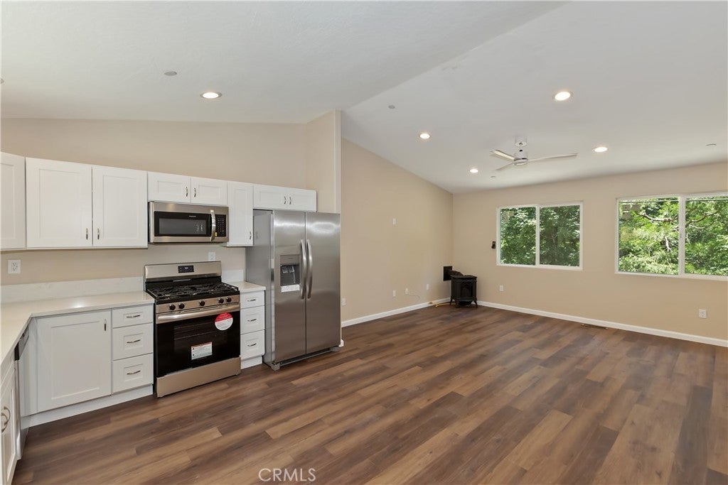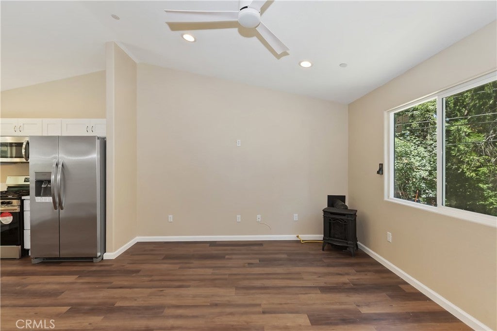 Discover Your Perfect Retreat in Crestline! Step into this exquisite new construction, complete with final inspection from the county, offering both modern luxury and energy efficiency. Enjoy the benefits of solar power, YES, SOLAR POWER, combined with brand new appliances and a one-year builder warranty for added peace of mind. This thoughtfully designed home features a versatile layout with two primary suites and two well-appointed bathrooms, ideal for families or hosting guests. The inviting great room showcases soaring vaulted ceilings and an efficient gas stove, creating a warm and welcoming space. A convenient one-car garage provides easy access, while the level entry from the street ensures seamless everyday living. Relax on the charming back patio, where you can unwind and soak in the serene surroundings. Situated on a plow-maintained road, this home boasts a prime commuter location close to the picturesque Lake Gregory. Experience the beauty of all four seasons in this brand-new property, ready for its new owners to create lasting memories. Don’t miss your chance to call this wonderful place home! Home has been virtually staged, no furnishings included.