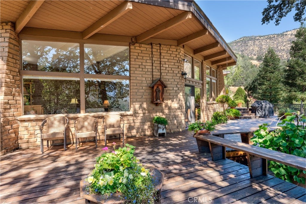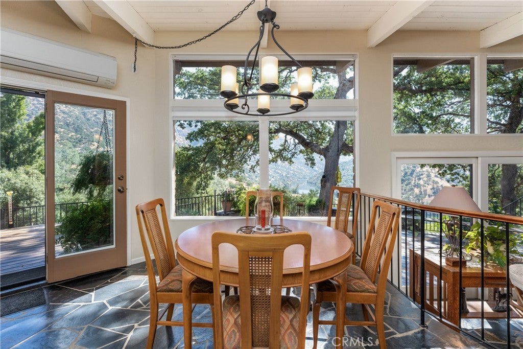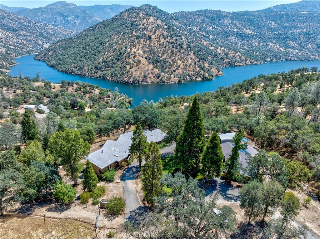 California Spanish Hacienda Style home on Redinger Lake!!!! Located on 12.51AC with vast incredible vista views of the lake, mountains, and seasonal waterfall! As you enter the gated Hacienda you are in aww of the circular driveway that surrounds a gorgeous lawn with massive cedar trees that accent the adobe style home. As you walk thru the custom door into the home, your eyes will go straight to the large windows that can't help but to captivate you right to the phenomenal deck and exquisite lake views! The pristine home features windows galore, pine cathedral open beam ceilings, skylights, peeled pole supports, slate floors, and a unique floor plan. This home has 2 master bedrooms. The larger master suite is located at the opposite end of the home from the other 2 bedrooms. The main master suite has a charming wood stove and glass doors that lead out into the fairytale back deck with lake views, all while laying in bed. The master bath could not be more charming, owners dug up the slate floors themselves out in Mariposa. Plus it has 2 basins with a pine ceiling and a glass atrium looking out into a mystical garden area! The kitchen is just as fabulous with windows looking out to the lake and new appliances. To make sure you are always comfortable inside the home there are 2 mini split units and 3 hot water heaters and one is on demand!!! There is not enough to say about the deck that has built-in benches, multi-level, and views of the lake that you never want to leave! Do not forget the massive garage has a shop, bonus room, and an attached van storage room. I forgot to mention the insane well that produces over 100gl/min. A property like this does not come around often! Perfect for all year round or as a 2nd home or AirBnB!!!!!