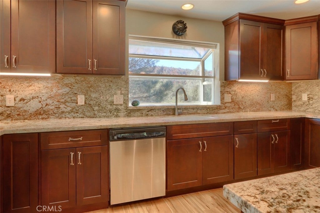 Gorgeous mountain views await you at this beautiful 4 large bedrooms, 3 baths home with an updated kitchen! The light and bright main living area with views from the sliding glass door and vaulted ceiling has an open flow from the living room, dining room and kitchen. The kitchen has a center island with breakfast bar, lots of granite counters and backsplash, recessed lighting, stainless steel appliances, garden window and extra cabinets for storage. The bedrooms are large with bathrooms and the primary bedroom has a walk-in closet, 2 sink vanity, and separate shower and bathtub. The spacious back patio offers more lovely views and a wonderful place to entertain or barbecue for family and friends! Beautiful private setting with a concrete driveway to a 3 car garage! 25 minutes to southern Yosemite National Park entrance and less than 10 minutes to Bass Lake. This home has details and features that you need to see! Come and see the views for yourself!