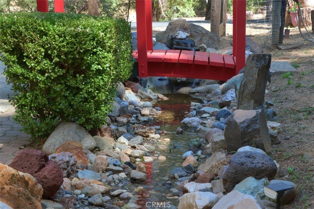 Wonderful retreat home with the original Mudge family cabin, completely refurbished, built in the 1800's and a lovely seasonal creek! A well landscaped front yard greets you on the way to the front deck and entry to this well maintained and updated main home with 3 bedrooms, 2 baths and 1668+/- sq. ft. The floor plan is spacious with an open living room-den-dining area leading to the large kitchen. Granite counter tops, tiled backsplash, recessed lighting all accentuate the stainless steel appliances and dark cabinets. The laundry room has storage space and a pantry. You'll love the master bedroom with an open vanity area with a walk-in closet and private shower area. The back deck is a great place to barbecue and enjoy the peaceful views of large trees and wildlife. The Creekside deck (16x16) and Gazebo (12x14) is perfect for entertaining or just a relaxing intimate get together with friends or family. There is plenty of parking space with a main level 2 car attached garage and an additional 1 car garage underneath with storage space. The 700+/- sq. ft. cabin has a main room with a kitchen and bath and has been completely refurbished with new plumbing and electrical, and mini split AC/Heat. The cabin can provide a wonderful mother-in-law living space or great vacation rental. Currently registered with Airbnb/VRBO. The solar system was installed 3+/- years ago, and features a whole home (and cabin) battery system (less the dryer and central air). 2 year old roof on the main home, and less than a year roof on the cabin. This beautiful 3.32+/- acres has a serene water feature with a charming bridge, a fenced garden area, apple, cherry and plum trees, several sitting areas, hammock and walking trails to the creek. Breathe in the fresh mountain air and enjoy nature!