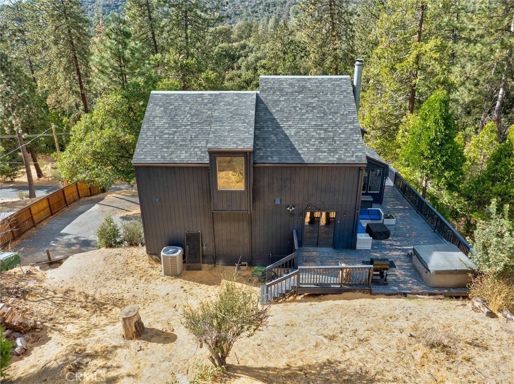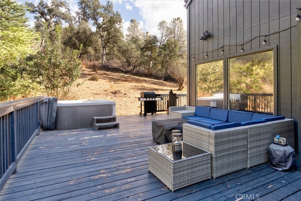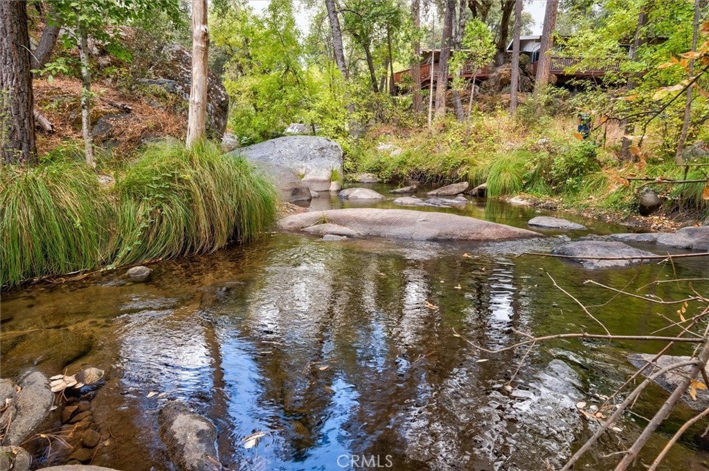 VALUE IMPROVEMENT> Consider this custom built home and creek side vacant land an opportunity to enjoy superb architectural, great location, and if you choose, vacation rental income. Yes, also included in the sale is vacant land parcel number 057490012. Private creek access from this home is across the street. Enjoy the year round serenity of Lewis creek. You and your guest will enjoy the shady shore and inviting cool waters. A short 13 mile drive north on Hwy 41 will grant you access to Yosemite National Park and the Mariposa Grove of Giant Sequoias. Vaulted open beam ceilings throughout the house (yes, in the three bedrooms too) are only one of the features that make this home standout as a cut above the rest. Come experience it yourself. Game room in the garage, wrap around deck, spa, new central heating and air conditioning, on demand propane water heater, sold furnished. Windows, windows, windows; let the light flow through the house and create smiles on all your guests. It's truly an amazing experience to arise for the new day in mountain luxury with plans to take the short ride to Yosemite or Bass Lake with friends and family.