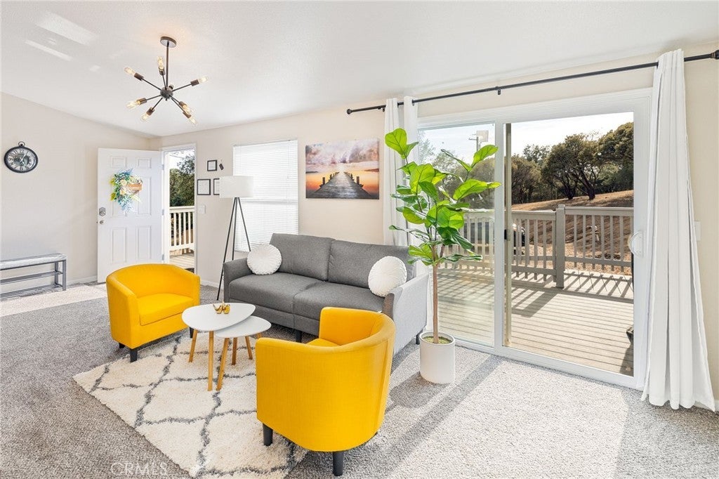 5.5 Acres of Tranquility & Panoramic Views! Welcome to your private mountain sanctuary, perfectly positioned on 5.5 picturesque acres with sweeping views of the majestic Sierra Nevada. The main residence is a charming 3-bedroom, 2-bathroom home thoughtfully situated at the top of a gently winding driveway. From the front rooms, enjoy breathtaking mountain vistas, while the shaded back porch and private hot tub offer a peaceful retreat among the trees. Inside, a vaulted knotty cedar ceiling adds rustic elegance to the open-concept great room, which has been tastefully remodeled to elevate both comfort and style. The updated kitchen boasts stone countertops and newer appliances, seamlessly connecting to a spacious dining area—ideal for hosting friends, family, or guests. The entire home has been recently refreshed with new interior paint, carpet, and sliding doors, creating a bright, welcoming atmosphere throughout. Each bedroom enjoys mountain views from every window, while the primary suite offers a walk-in closet, private en-suite bath, and direct patio access. A second bedroom also includes patio access and a walk-in closet, and the third shares a well-appointed bathroom. Don’t miss the permitted 400 sq ft game room—a perfect hangout spot filled with fun and laughter. The newer roof with solar adds both value and sustainability. Solar loan assumable. A true highlight of the property is the second home: a 2018 manufactured residence that is fully handicap accessible, featuring 2 bedrooms, 2 bathrooms, and a thoughtfully designed 920 sq ft layout. Stone countertops, an open and airy design, and a full-length covered porch with a custom wheelchair ramp make this a comfortable, inclusive space for all. Outside, the property shines with a recent landscape makeover, creating countless spots to relax in the shade, sway in a hammock, or gather for picnics under the open sky. Cool breezes sweep in daily—from gentle morning drafts rising from the valley to crisp evening air drifting down from Yosemite. And with a new well pump, you’ll have ample water year-round. This rare dual-home mountain retreat offers unmatched opportunity in a truly stunning setting.