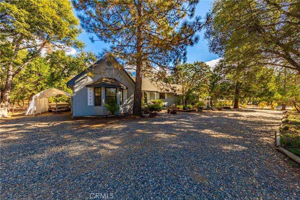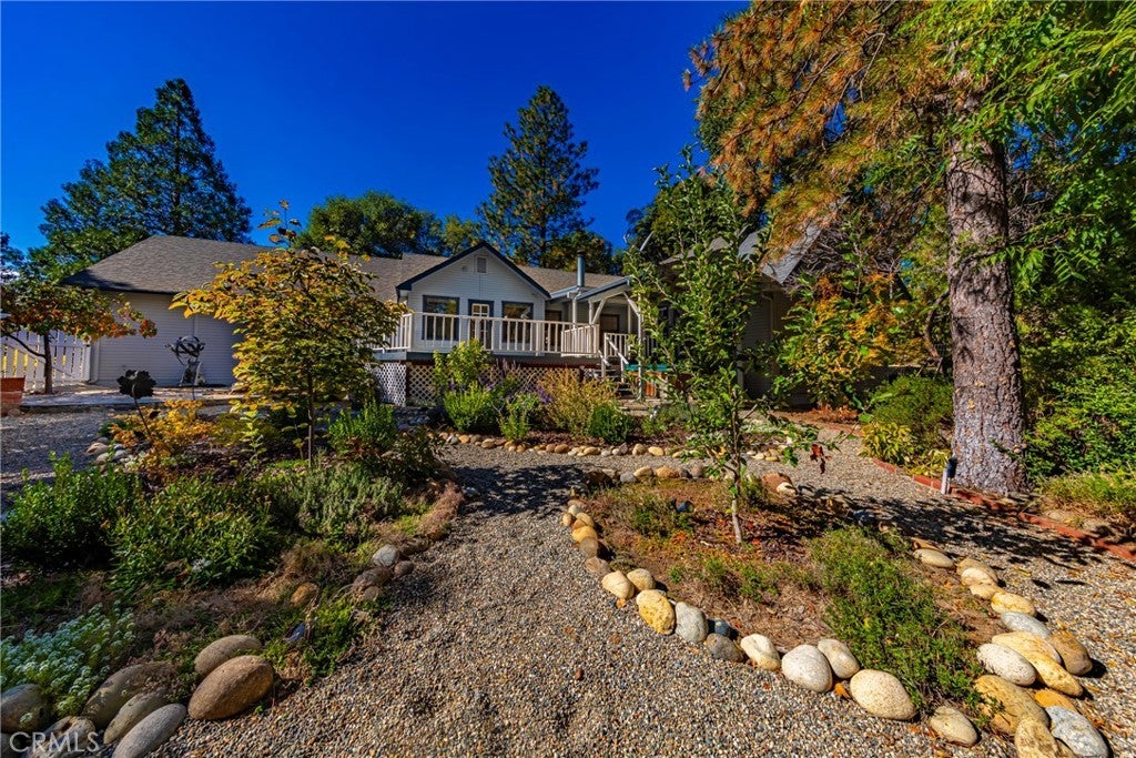 Ranch Style CUSTOM home in Oakhurst, conveniently located, nestled in the mountains, at the Gateway to Yosemite National Park. 3.5 miles to town for shopping, entertainment, schools, shopping and 6 miles to beautiful Bass Lake. The home is a one of a kind featuring, 3 Bedrooms 2 baths, a very large light and bright office/sewing room. Large pantry, open style living room with vaulted ceiling and a beautiful country chandelier. Extra large 2 car garage, with workbenches. Fully landscaped front and backyards with a lovely slate patio. There is a fantastic deck. partially covered with access from dining room and off the master leading to a covered hot tub. Comes with a whole house generator a concrete RV pad and backyard irrigation system. Includes an outdoor wood shed and an inside the garage wood storage area. New hot water heater, new dishwasher new flooring, new paint inside and out, most inspection and reports have been completed. A 5 camera Blink security system available, and a vegetable garden area for the farmer in you. A gigantic ideal 1100 square foot SHOP/mancave or possibly an income producing ADU if a buyer was to convert it. Some photos have been AI enhanced. One owner is a licensed Realtor.
