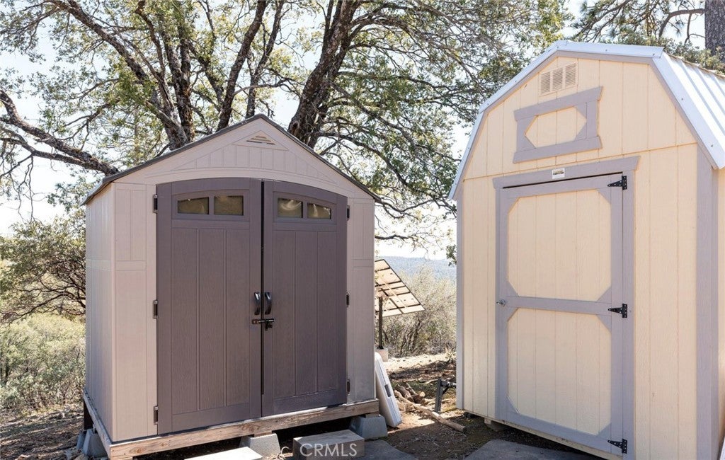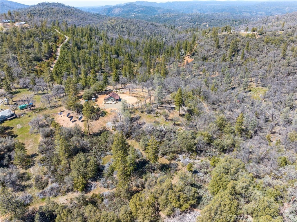 Small is Beautiful – Off-Grid Mountain Living with Big Views If you're drawn to independence, solitude, and natural beauty, this artist-designed home offers a rare opportunity for off-grid living just 15 minutes from Mariposa. Perched on 20 private acres with breathtaking Sierra views, this newly completed 1,000 sq ft residence combines sustainable living with upscale finishes and thoughtful design. Set amidst the pines with fresh mountain well water and a state-of-the-art 20-panel solar system, the home blends seamlessly into its surroundings with optimal orientation for sunrise and sunset. Every room offers outdoor access and sweeping views, while the high ceilings and open-concept layout create a bright, airy atmosphere. The 2-bedroom, 2-bath floor plan is perfect for vacationing couples or full-time living, with excellent privacy between bedrooms. Highlights include: Custom rustic alder cabinetry, wide-plank butcher block countertops Upscale tilework and vanities in both bathrooms High-end appliances, modern lighting, and wood-look vinyl plank flooring Spacious pantry, laundry area, and generous storage Enjoy a strong indoor-outdoor connection with a large covered front porch and two expansive patios—one fully fenced for children or pets. A separate 4-acre fenced zone with an electronic gate provides additional security and ample space for larger animals. The property is completely off-grid with robust systems, including: Owned propane tank 10kW Generac generator On-site well with 2,500-gallon storage tank On-demand water heater Fiber optic internet availability Wood stove with rock hearth and whole-house furnace backup Additional features include an 8'x10' storage shed, an 8'x8' woodshed, an insulated battery shed, freshly grated gravel driveway, and a large bear-proof garbage box repurposed from Yosemite National Park. This is your chance to own a peaceful, private retreat with modern comforts and rugged charm.