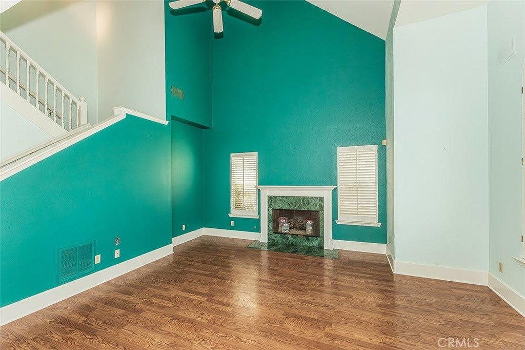Price reduced $50,000! You have arrived at this very desirable Northeast Fresno community. Enjoy this lovely 4 bedrooms and 2 bathrooms home with an excellent floor plan. The spacious great room has high ceilings and a wood insert fireplace for your relaxation and comfort. The room is accented with plantation shutters and ceiling fan plus laminate wood flooring in many other interior rooms. The kitchen is complete with a center island, double ovens, gas cooktop, microwave and convenient pantry. The large primary bedroom and very large main bathroom is downstairs with French doors to the rear yard. The bathroom has been beautifully remodeled with quartz countertops and double sinks plus a lovely rain shower. The upstairs living space features a loft balcony area, builtin bookcases, and 3 very large bedrooms. The adjacent bathroom has double sinks and another door that opens to a very handy extra storage attic. In addition you will be impressed with all the storage cabinets inside and in the garage too. Relax and entertain in the well designed rear yard with a patio, synthetic grass and drip irrigation. This delightful home is near shopping, dining and Clovis Unified schools.