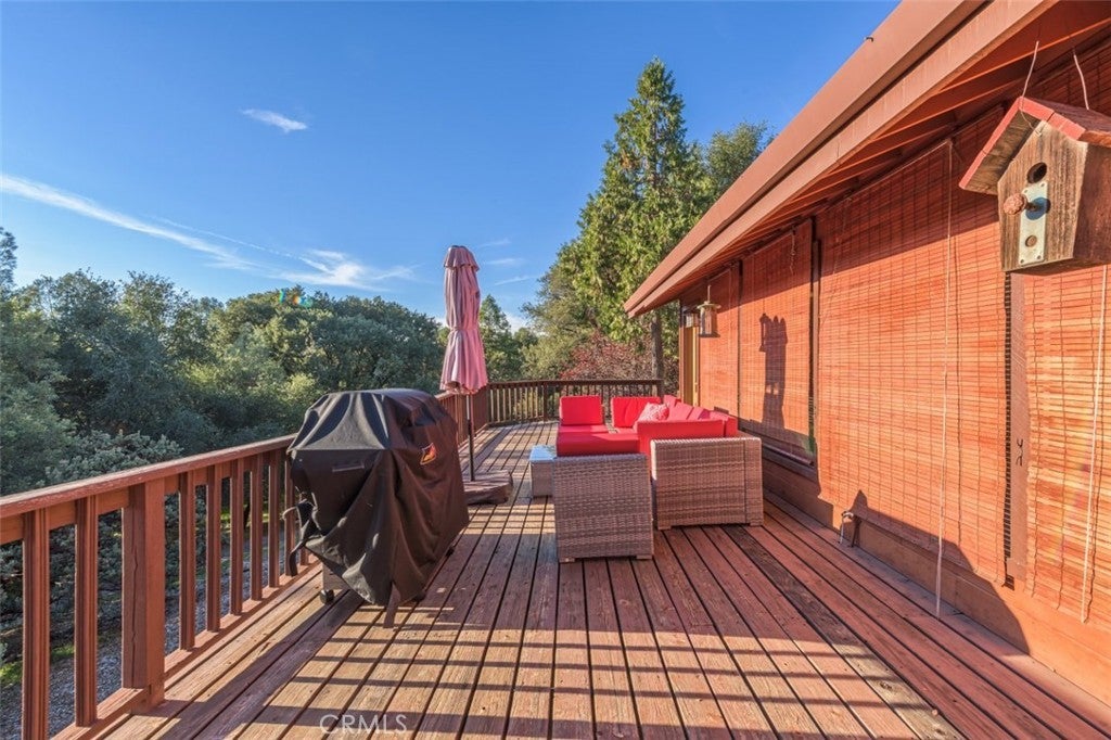 Custom mountain home with an extra parcel! Turn key home comes fully furnished and is ready to use as an Air B&B! This retreat home is set among tall Pines and Cedars to give the vacation feel from every view window! Beautiful details everywhere! The 2 story living room has a fireplace, open loft and windows galore, the spacious dining room offers another fireplace! The kitchen has Granite counters, stunning tile back splash and gorgeous cabinets! Primary suite is a dream come true with a large walk-in closet and an attached bath to drool over with a relaxing soaking tub sitting in front of the propane fireplace and a separate shower! Every window offers great views but the best view is from the huge deck that is great for entertaining! Lovingly cared for with new bedroom and bath that would make a great mother-in-law quarters and includes a Dankin Inverter heat/air system, back-up generator, water softener and security systems. Huge 4 car garage with drive thru bay! Good well for the house and neighboring 1.13+/- acre parcel! Excellent location-minutes to Bass Lake and Yosemite! Great vacation rental!