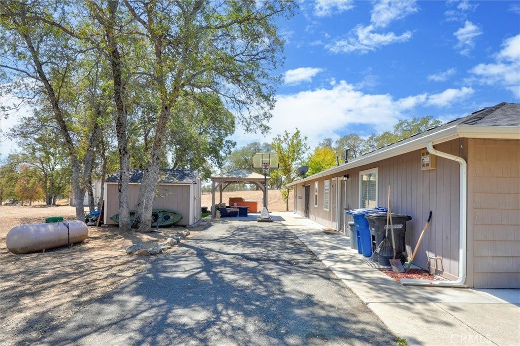 This is a must see! This custom-built home on 2.5 acres tucked into the Sierra Nevada foothills offers peace and quiet at the end of a cul-de-sac. As you step foot into this lovely home, you will notice how open yet cozy it is. The Brazilian acacia flooring and the German Beechwood kitchen cabinets, linen cabinets and den bookcase lends a polished and warm feel to the home. The kitchen features granite countertops, recessed lighting, tray ceiling and walk in pantry. The master suite is roomy and comfortable with French doors leading out to a gazebo covered patio and a large hot tub. The other 2 bedrooms are en suites with both having their own full bathroom. The bonus room features barn doors for privacy and can be used as an office, den, work out space or an extra bedroom. To add to all these amazing features, the home also boasts a covered back patio, a large shop, a pole barn and sheds to store your extra items. To top it off the home also offers owned solar and 2 year Roof Certification! This one won't last long! Make your appointment today!