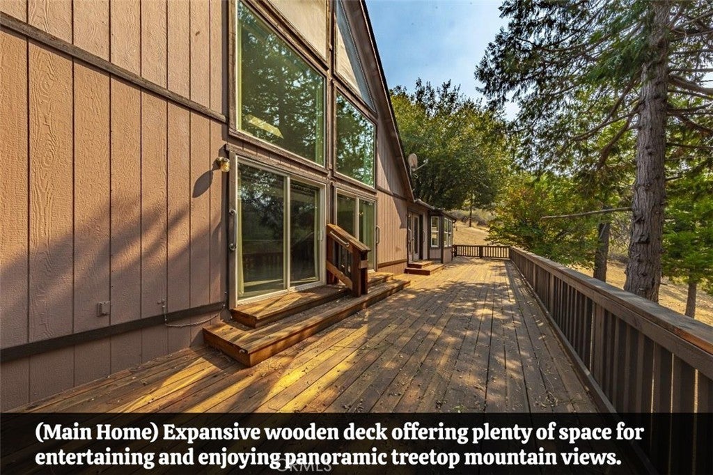 Now here is a great investment opportunity for your family to enjoy throughout the years ahead! Whether wanting a separate space for your teens or to have in-laws live on the property and have their own space, with 3 separate living spaces the opportunities are endless. The main 2 story home has beautiful views, high ceilings and lots of open space with 3 bedrooms, 2 bathrooms 2250+/- sq. ft. and expansive decking to enjoy the great outdoors, you will feel like your living in a tree house. There is a 2 car garage and under the home is a massive work space with roll up garage door having 1120+/- sq. ft. and beyond the work shop is a 1 bedroom, 1 bath 492+/- sq. ft. apartment with its own kitchen. If this all is not enough, be sure to check out the 960+/- sq. ft. separate home with 2 bedrooms, 1 bath with a separate address and driveway and an adorable kitchen, large bathroom and nice floor plan. With a great location roughly 7 minutes to Bass Lake, 7 minutes to Oakhurst and 20 minutes to Yosemite. All of this with seclusion and privacy. The main home has recently had a new roof installed, the pest repairs completed and most all of the decking has been replaced. The 2nd home is being sold "As Is". If you are looking for a home of your own with extra income, this property is a must see! Use the guest home or apartment as monthly rentals or Air B&Bs! Opportunity is knocking!