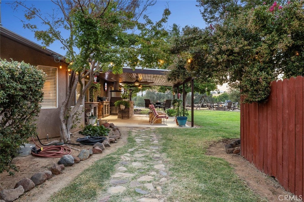 Original owners! This exceptional property showcases breathtaking views, pride of ownership, and thoughtful upgrades. The backyard is an entertainer's delight, featuring an outdoor kitchen, fire pit, string lights, garden beds, and mature trees lovingly planted by the sellers. Inside, enjoy a commercial-grade stove, large ceiling fans, and an updated primary bath. A 4th bedroom, currently used as laundry/storage, can easily be converted back. Recently painted interior and exterior. Practical enhancements include a permitted 2628 shop (12 ft. walls, newer roof), garden shed, a high-producing 23 GPM well with filtration system, and an upgraded 1,500-gallon septic with convenient clean-outs. Gated fencing, French drain, and a seasonal creek add both function and charm. Located in a Fire Wise Community with secure PG&E power access, this property seamlessly combines comfort, utility, and outdoor living.