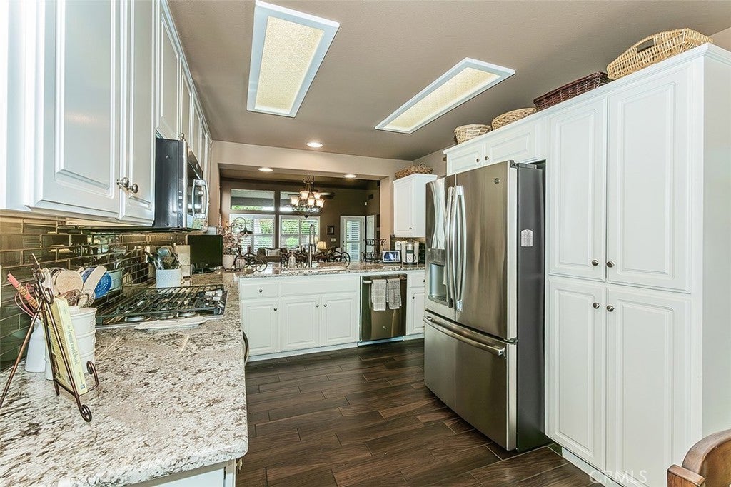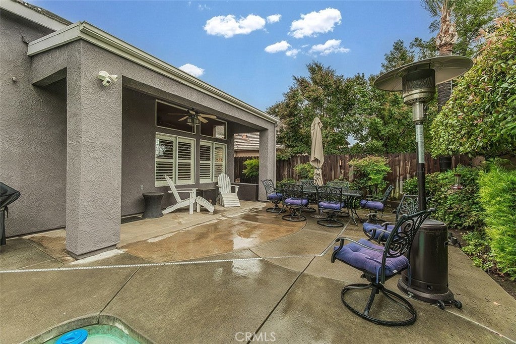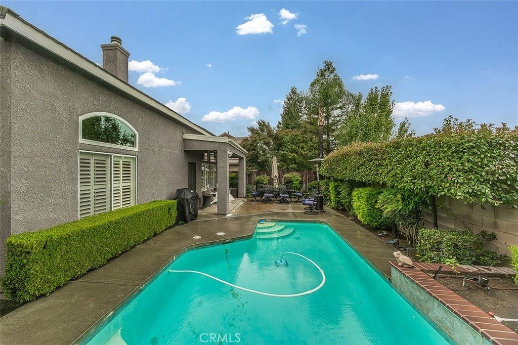 Look At This Price Reduction-Seller wants this home sold now! Pool and Owned Solar... This outstanding, immaculate Mansionette Palisades 3 bedrooms, 2.5 bathrooms has been beautifully updated and shows pride of ownership with loads of upgrades including shutters throughout this great home. Enjoy very low energy bills with owned solar that was installed in March, 2023 plus a 2 year old HVAC and heat pump and a whole house fan. When you enter this immaculate home, you will appreciate the easy care tiled flooring and the open feeling this floorplan has to offer. The fabulous remodeled kitchen with granite countertops and glass splashback is a delightful choice of decor and design. The appliances are top of the line GE Profile with a gas stove and cooktop and a microwave/convection oven combo. There is a convenient eating area nook as part of the kitchen plus an eating bar and a larger dining room area adjacent to the great room that gives you many options and locations to enjoy and use for entertaining. The great room has a very open feeling with a gas fireplace and many windows and convenient access to the rear yard. The primary bedroom with a large walk in closet and deluxe bathroom are nearby and downstairs for your comfort and accessibility. The laundry room is conveniently located and has access to the very nice two car garage. Upstairs are two bedrooms and a bathroom plus a loft area that could be used for an office, reading area, etc. You will love all the storage and closets this home has to offer. Enjoy your own private swimming pool and lovely backyard with loads of room for entertaining and relaxation. The easy care yard adds to your enjoyment. Feel safe and secure in this wonderful gated community that is close to shopping, dining, top rated Clovis schools, and convenient freeway access.