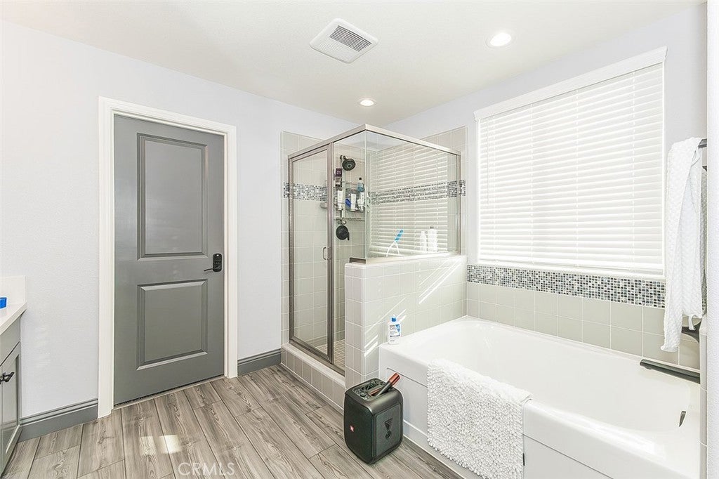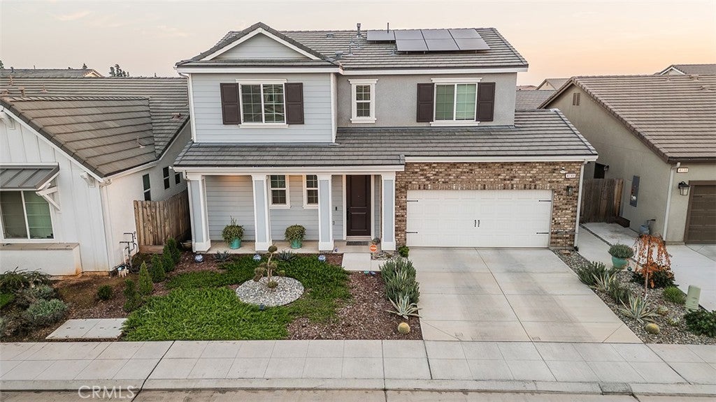 Beautiful Contemporary Home in Clovis Unified and the Loma Vista Lifestyle. Minutes away restaurants, shopping, and all your wants. Built in 2022, this 2,128 sq. ft. modern two-story features 4 spacious bedrooms, 2.5 bathrooms, and custom upgrades throughout. Scratch and water-resistant laminate flooring flows throughout and primary bedroom, while the 3 guest bedrooms offer cozy carpeting. The open-concept kitchen and living area include upgraded light fixtures and fans, a farmhouse sink, gas cooktop, deep walk-in pantry, and a convenient downstairs half bath, perfect for everyday living and entertaining. Upstairs, all four bedrooms are generously sized. The primary suite includes dual sinks, a soaking tub, and a walk-in shower. Guest bedrooms share a well-appointed full bathroom. Step outside to a lush, low-maintenance backyard with a covered patio for year-round enjoyment. Additional highlights include dual pane windows, tile roof, and 23 leased solar panels with two backup batteries, and EV charger. Offering excellent energy efficiency and convenience. Sharp, contemporary, and located in a desirable neighborhood, this Clovis gem is a must-see!