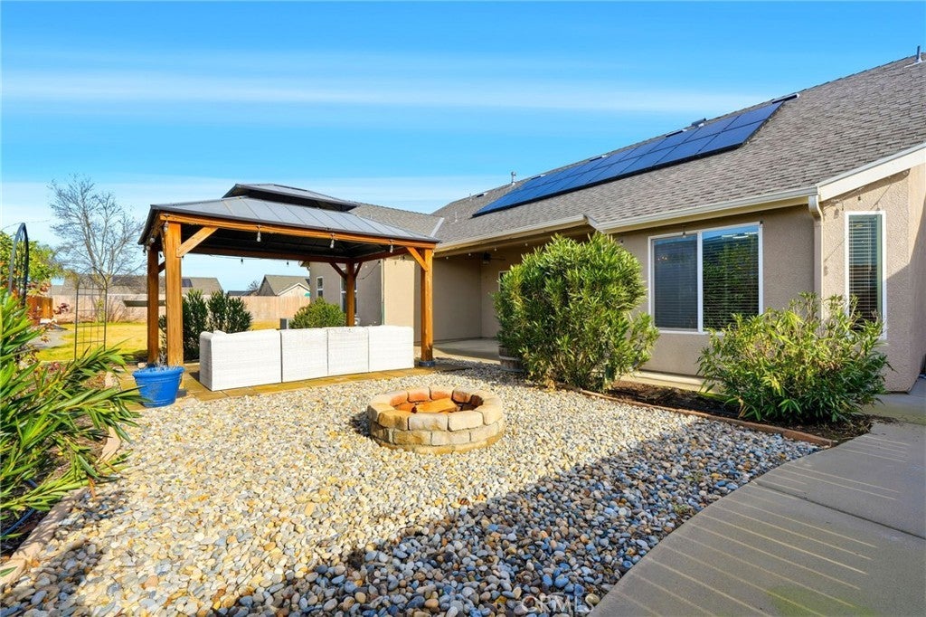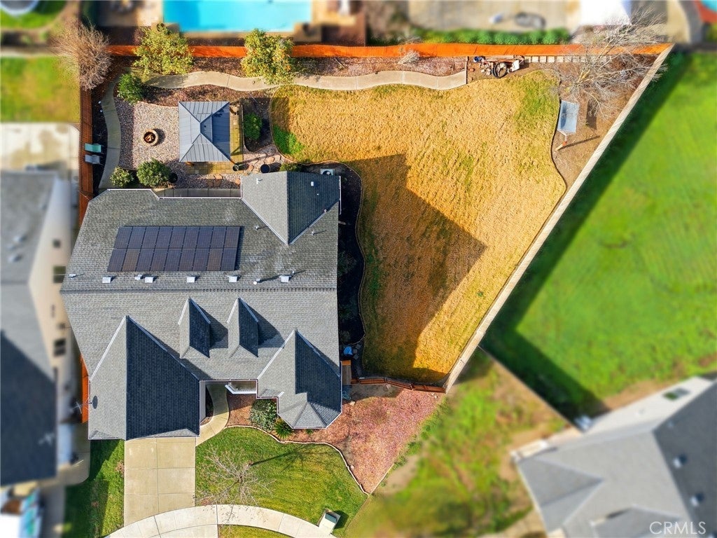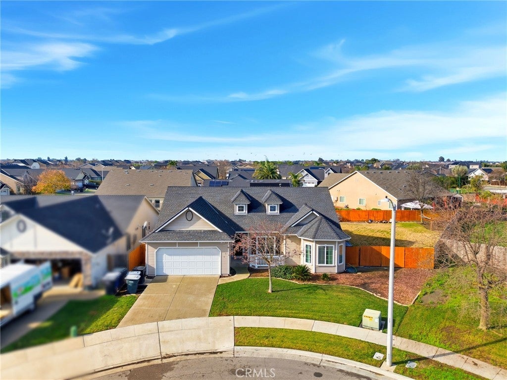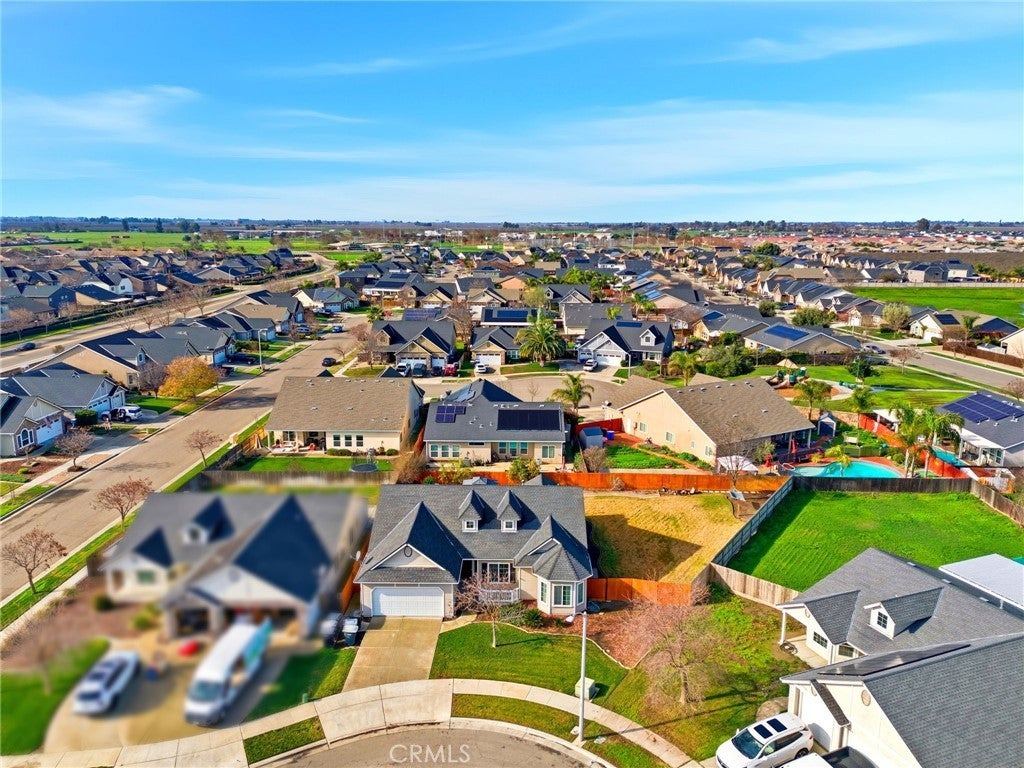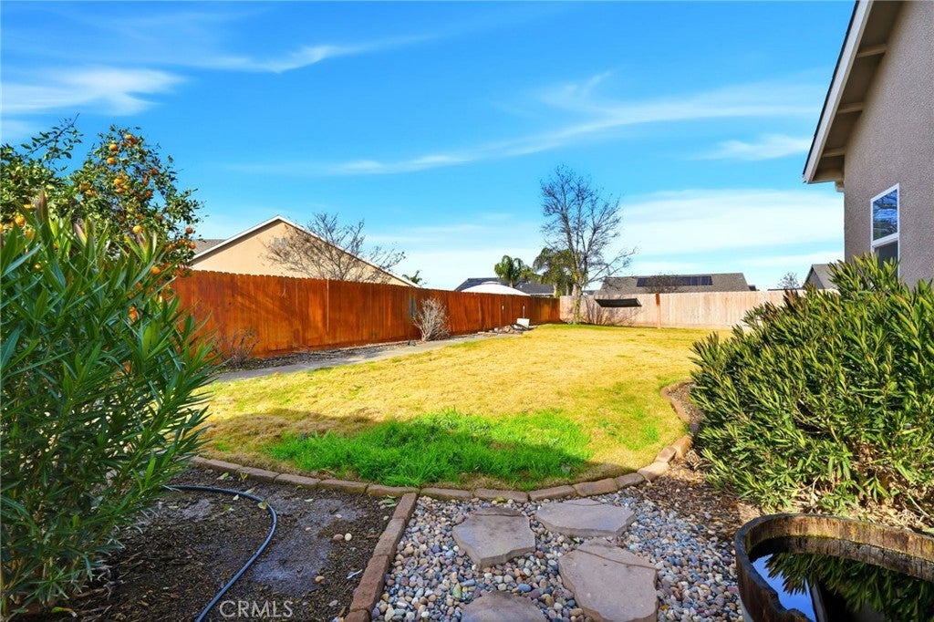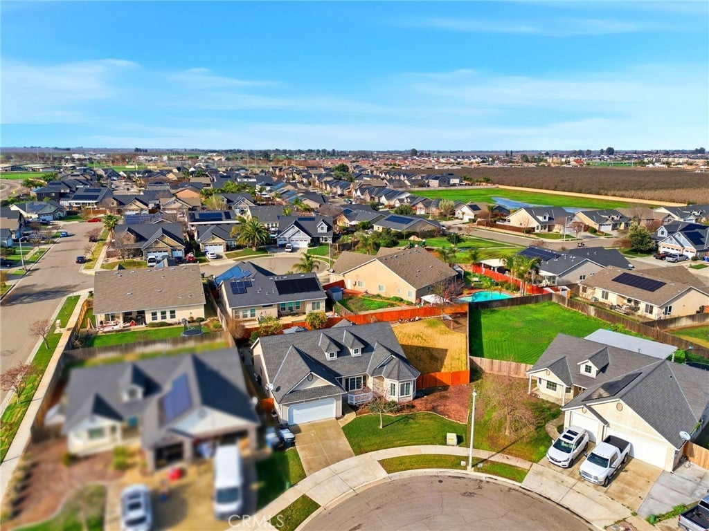 OWNED solar and located in a quiet cul-de-sac, this beautifully maintained 3-bedroom, 2-bath Lennar home sits on an expansive 10,000 sq ft lot with endless possibilities. Whether you're dreaming of a pool, ADU, RV parking, garden, or she-shed, this backyard truly offers the space to make it your own. Inside, you'll find wood-like flooring throughout, updated fixtures, and an open, inviting layout. The kitchen features granite countertops, a walk-in pantry, breakfast bar, and a sunny breakfast nook with a charming bay window. The spacious family room offers vaulted ceilings and large windows that look out to the backyard, creating a light and airy feel. The private primary suite is a true retreat with dual closets, his-and-hers sinks, a separate tub and shower, and views of the backyard. Step outside to enjoy the covered patio-perfect for relaxing or entertaining year-round. Additional highlights include a water filtration system, paved walkways throughout much of the backyard, mature fruit trees, and plenty of shade. Situated in a premier neighborhood close to NAS Lemoore and feeding into Sierra Pacific High School, this home checks all the boxes for space, location, and long-term potential. A rare opportunity with owned solar, a large lot, and room to grow-don't miss it.