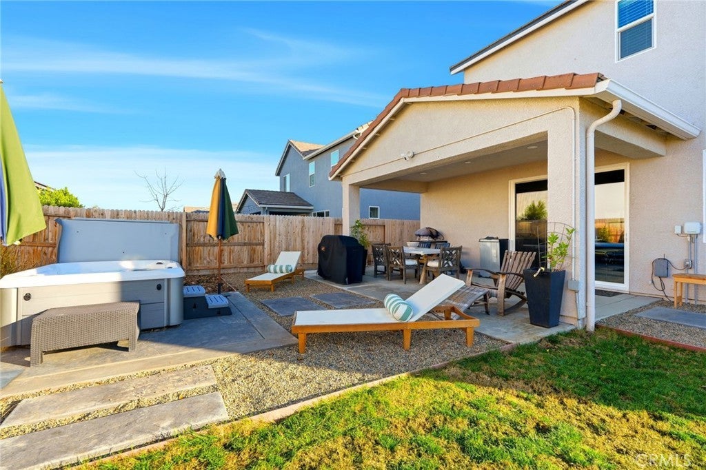 Owned solar and over $60,000 in premium design upgrades highlight this stunning Woodside Camellia floor plan. Featuring 4 bedrooms and 3 full bathrooms, this home is perfectly positioned on a large corner lot just off the neighborhood park, with no neighbors on one side, offering exceptional privacy, serenity, and open space. Designed with quality and functionality in mind, this home offers a huge pantry and incredible storage spaces throughout, making everyday living both organized and effortless. Additional features include a tile roof, extra insulation for efficiency and comfort, and a tankless water heater. The finished backyard is ideal for entertaining or relaxing and includes a covered patio and a hot tub, with warranty still remaining on the hot tub. Inside, you’ll find a full bedroom and full bathroom downstairs, perfect for guests or multi-generational living. The spacious and inviting living area opens seamlessly into the premium kitchen, complete with high-end finishes, a kitchen sink water filtration system, and thoughtful design details. This home has been meticulously maintained and shows like new. Located in a premier northwest location close to NAS Lemoore and zoned for Pioneer School District and Sierra Pacific High School. If you’re looking for quality construction, exceptional upgrades, and an unbeatable location, this Woodside Camellia is one you won’t want to miss.