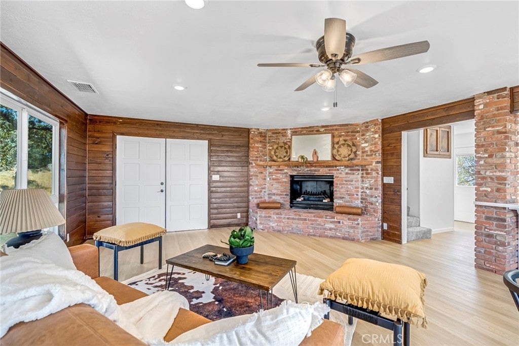 Welcome to 41070 Lilley Mountain Drive in Coarsegold a private mountain home offering expansive views, thoughtful updates, and everyday functionality. Situated at the top of Lilley Mountain, this property captures near-unobstructed views of the Sierra Nevada Mountains and Hensley Lake, creating a peaceful setting with a strong connection to nature. Enter from the covered front porch into a light-filled living room featuring a stone fireplace and large picture windows that frame the surrounding landscape. The updated kitchen is designed for both function and style, offering quartz countertops, stainless steel appliances, new cabinetry, a breakfast bar, and a walk-in pantry. The primary bedroom is located on the main level and includes private deck access and an updated en-suite bathroom. Upstairs, two additional bedrooms feature new flooring, updated lighting, and scenic mountain views, along with a full bathroom. Outdoor living is a standout feature with a large rear deck, ideal for enjoying the views and fresh mountain air. Recent improvements include a new roof and new HVAC system, adding long-term value and comfort. A detached garage with its own driveway and large windows provides flexible use options such as storage, workshop space, or future studio use (buyer to verify). This Coarsegold property offers a blend of privacy, updated interiors, and scenic surroundings, all within convenient driving distance to local amenities.
