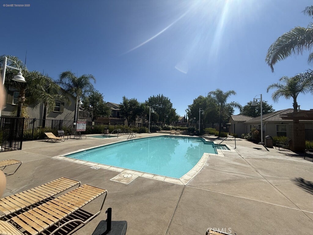 Now Move-In Ready. **This Beautiful, Condo located in the extremely well-kept Casabella Community is the ideal home!** Spanning 1,696 square feet, this beautifully designed 2-story, 3-bedroom, 2.5-bathroom condo offers a perfect blend of comfort, style, and convenience. It features an oversized 2-car garage, along with a host of premium amenities. Upon entry, you're greeted by a spacious, open-concept living area that seamlessly connects the dining area, large kitchen, living room, and a cathedral ceiling stairwell to the upstairs bedrooms. The large downstairs living area is complete with access to the attached oversized 2-car garage and sliding glass door to a large low-maintenance private outdoor patio area. The spacious eat in kitchen/dining area boasts tons of gorgeous oak cabinets, chef's kitchen counter-space, a large pantry, bar top island, stainless steel appliances, lots of windows, and plenty of room for a large dining table. You’ll enjoy the modern open concept of the first floor living space with a large family room featuring a cozy fireplace and entertainment area. A generously sized closet and guest bathroom complete the bottom floor. Upstairs there are 3 spacious carpeted bedrooms with ceiling fans and hallway, with 2 bedrooms sharing a full size tiled bathroom as well as a separate tiled laundry space with included washer/dryer. The master suite is a genuine retreat, featuring a private tiled bathroom with double vanity sinks, a spa-style tub, separate shower, walk-in closet, and a beautiful 180-degree 2nd floor view. A private fenced yard with paver flooring is the perfect space for a pet, children to play, or outdoor entertaining! The immaculately well-kept, managed, and patrolled 204 dwelling private Casabella community amenities include a family park, pool, and clubhouse! Nestled in a prime location, this home is close to shopping, a local sports park, and award-winning Temecula schools. Enjoy serene master-suite views of a setback hilltop complete with fitness trail only blocks-away. This is the perfect combination of suburban living with a touch of rural charm.