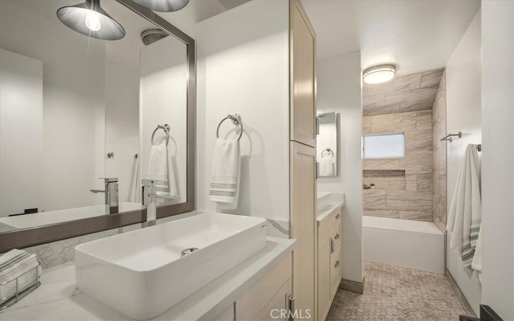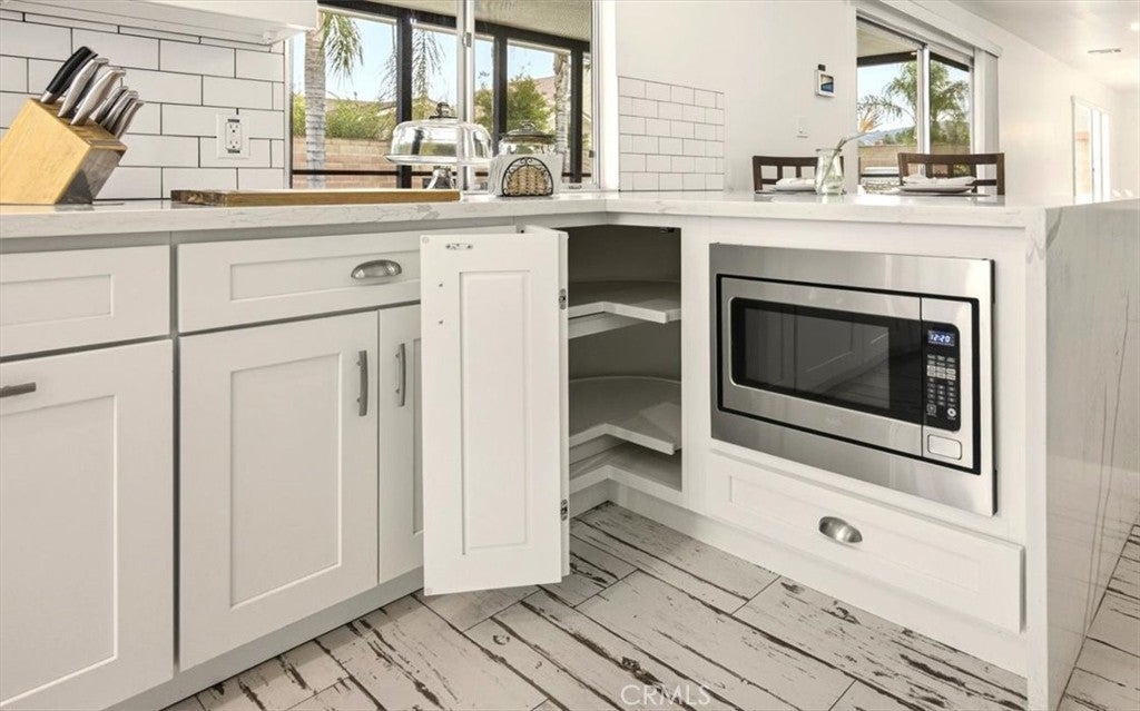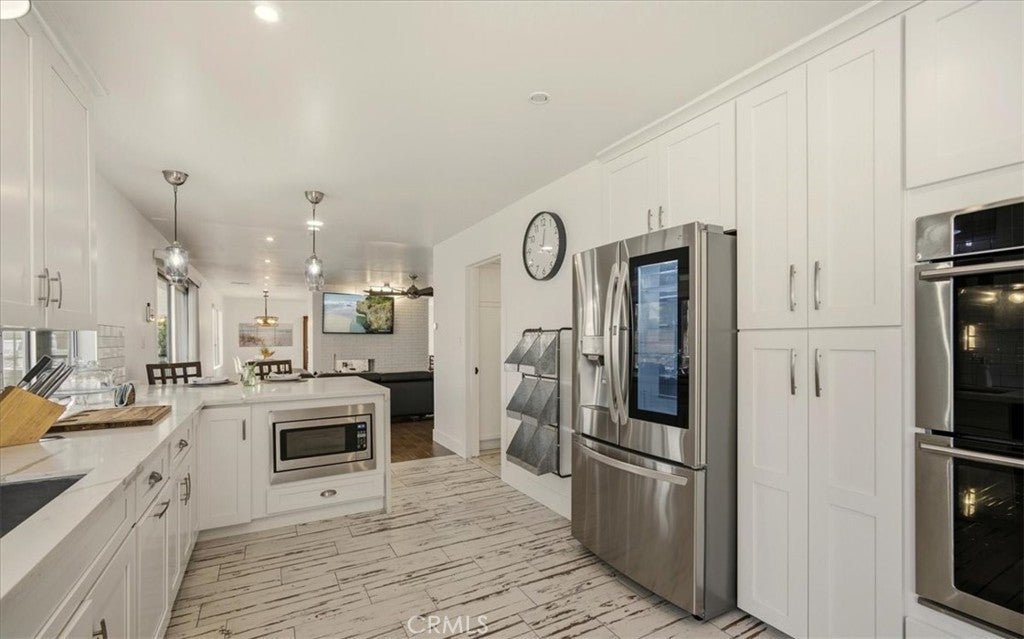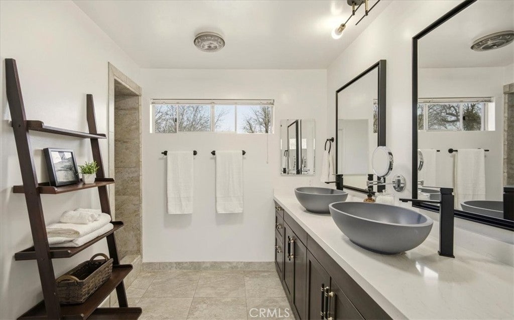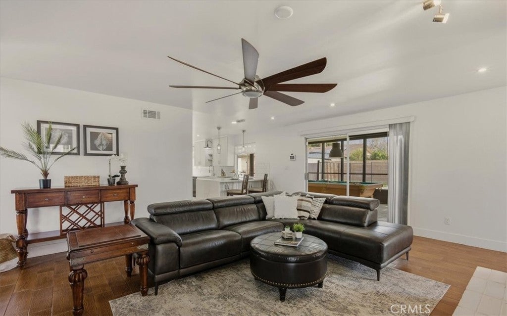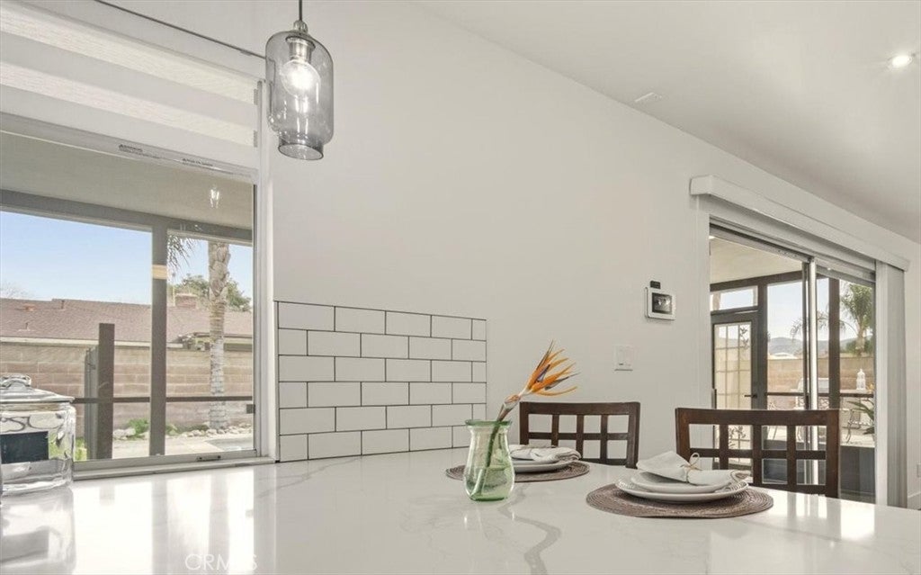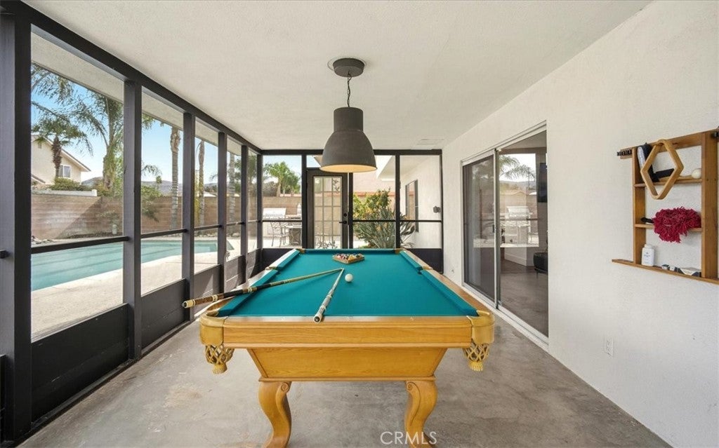 MODERN MASTERPIECE IN EAST HEMET: A MIDCENTURY SANCTUARY REIMAGINED! Step into a world where MIDCENTURY ARCHITECTURE meets 21st-century intelligence. Located on a quiet, tree-lined cul-de-sac in one of East Hemet’s most sought-after pockets, this custom-designed estate been meticulously REMODELED BY A DESIGNER as masterclass in light and flow. Beyond the grand double-door entry, an OPEN RISER STAIRCASE and LONG OPEN SIGHTLINES create an INDOOR-OUTDOOR FLOW, while massive windows bathe the open-concept layout in natural light. THE CULINARY HEART! DESIGNED BY A CHEF, the kitchen is a work of art featuring QUARTZ WATERFALL COUNTERTOPS, 42-inch birch cabinetry, and 100-YEAR-OLD RECLAIMED WOOD FLOATING SHELVES. This high-performance space is wrapped in counter-to-ceiling tile and equipped with: GOURMET POWER: A 5-burner cooktop with a pot filler and an upgraded stainless-steel hood. CUSTOM STORAGE: Full-length double pantry, two spice cabinets, and three corner Lazy Susan, two pot drawers and hidden waste bins TECH-FORWARD: Smart refrigerator and double ovens, all accented by multi-zoned custom lighting. LUXURY RETREATS! The oversized bedrooms offer a peaceful escape, with sleek laminate flooring and modern fans including a FRENCH-DOORED LIBRARY/FLEX SPACE. The bathrooms are professionally designed for a spa-like experience, featuring a GROTTO SHOWER with waterfall heads, 9-foot double vanities with vessel sinks, and an oversized tub with dedicated ceiling heaters. An Entertainer’s Outdoor Oasis! The over 9,500 sq. ft. lot is a private paradise. Poolside Living: A heated pool with a newer energy efficient heater and pump, complemented by a professional BBQ island and refrigerator. The View! Take in mountain vistas from the 25-foot balcony with integrated solar lighting. Year-Round Fun! A dedicated sunroom/rec room currently houses a pool table, perfect for indoor-outdoor hosting. Smart & Sustainable! This is a truly connected home, featuring solar panels, smart dual-zone HVAC, keyless entry, and a comprehensive Ring and ADT camera security system. For travelers, the property includes RV parking with a dedicated 220V hookup. SOUGHT-AFTER NEIGHBORHOOD AND SCHOOLS, LOW TAXES, AND NO HOA. THIS IS A ONE-OF-A-KIND SMART HOME THAT BLENDS TIMELESS DESIGN WITH MODERN LUXURY.