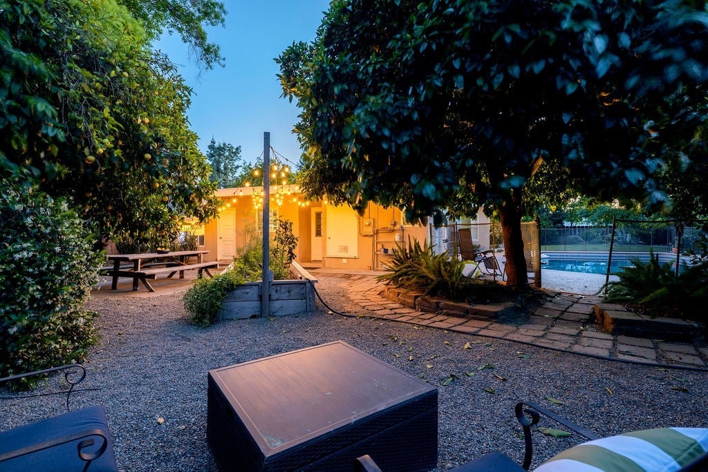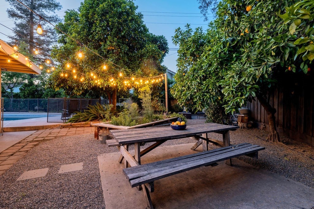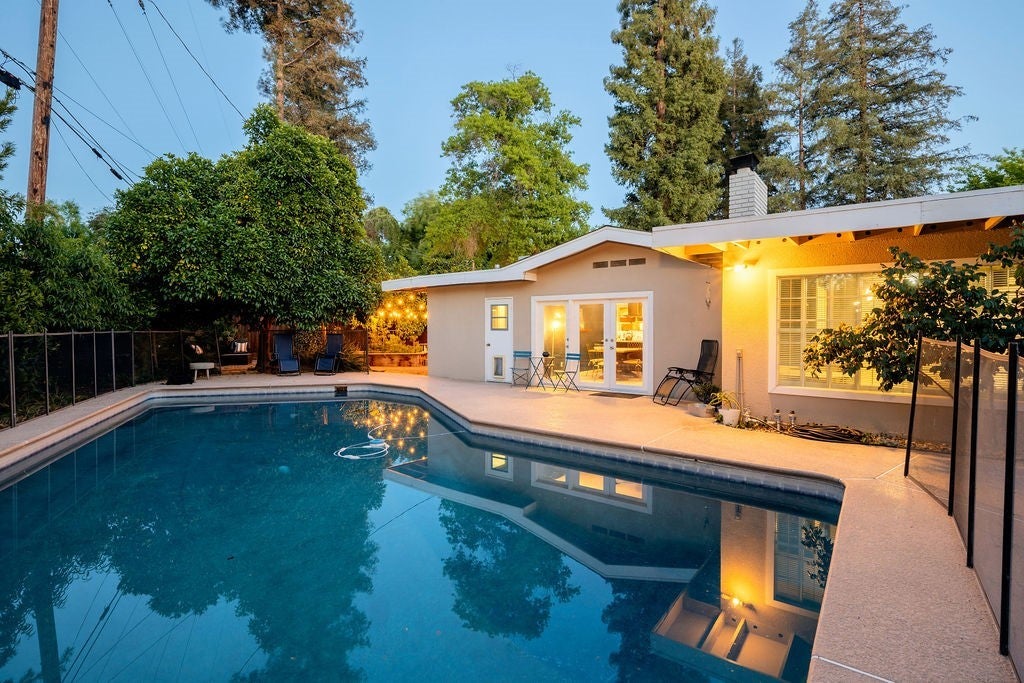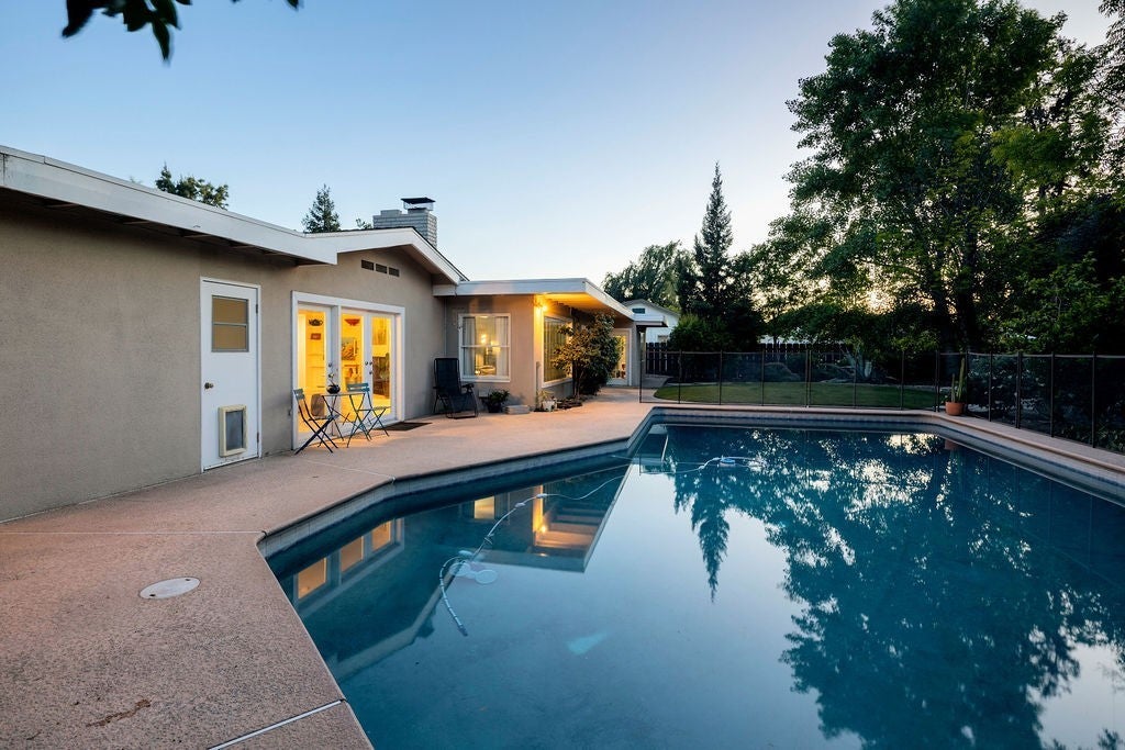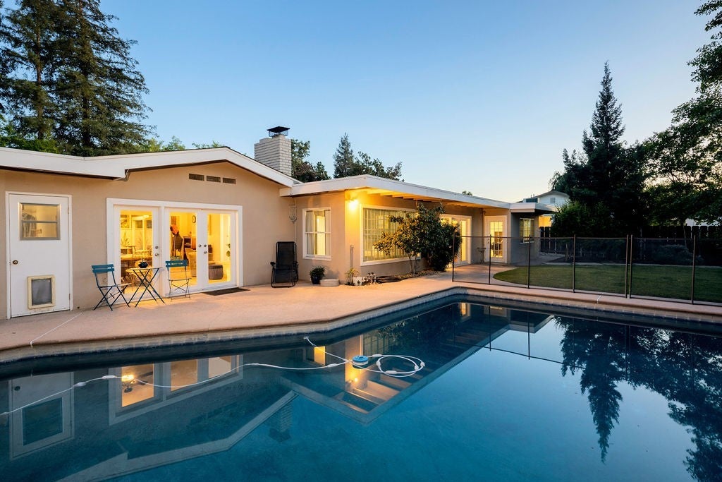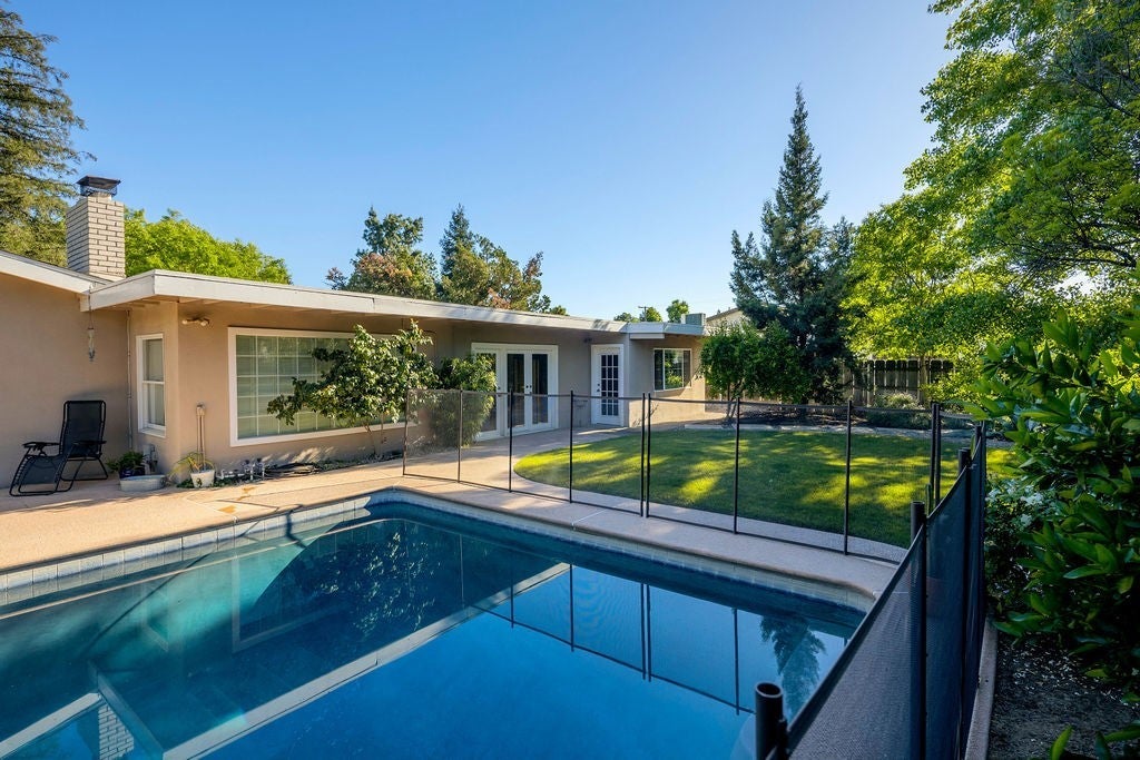 Welcome to 1264 W. Celeste Ave a stunning, light-filled Mid-Century Modern home nestled in one of Fresno's most sought-after neighborhoods. Offering 2,675 square feet, 4 bedrooms, and 2.75 baths, this exceptional property has been thoughtfully updated while preserving its timeless architectural charm. Beamed tongue-and-groove ceilings, skylights, and expansive walls of glass create a seamless connection between indoor and outdoor living. Step inside to a grand living space bathed in natural light, featuring oversized picture windows, a natural gas fireplace, and serene views in every direction. Designed to be the heart of the home, the spacious kitchen offers a breakfast bar, modern appliances, open shelving, a walk-in pantry, and original Old Fresno'' tile. From here, you'll enjoy a bird's-eye view of both living areas and the sparkling pool beyond. The dining room provides a warm and inviting setting to gather and unwind, complete with a wood-burning fireplace and built-in shelving.Retreat to the expansive primary suite, where a spa-like ambiance awaits. This private sanctuary features a beautifully updated bath, multiple closets, French doors leading to the backyard, and its own split-unit heating and cooling system for personalized comfort. Additional generously sized bedrooms offer ample closet space and picturesque views of the outdoor landscape. Outside, your California lifestyle comes to life. Take a refreshing dip in the large pool beneath mature shade trees, host dinners al fresco on the patio, or cultivate your farm-to-table dreams with a raised garden bed and fruit from multiple trees, including: orange, tangelo, grapefruit, meyer lemon, lime, guava, mandarinquat, loquat, nectarine, peach, pomegranate (landscape maps are included with the sale). Situated on a spacious lot in a premier Fresno location, this home perfectly captures the essence of relaxed, sophisticated California living.