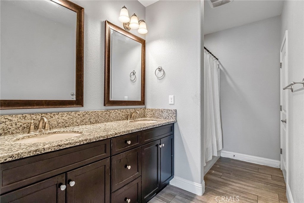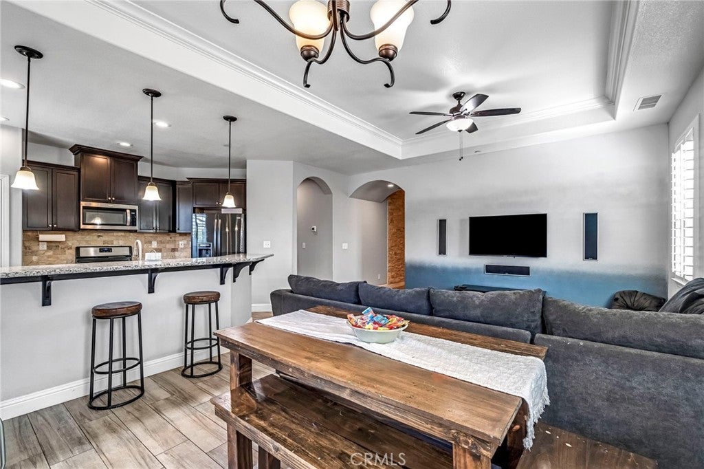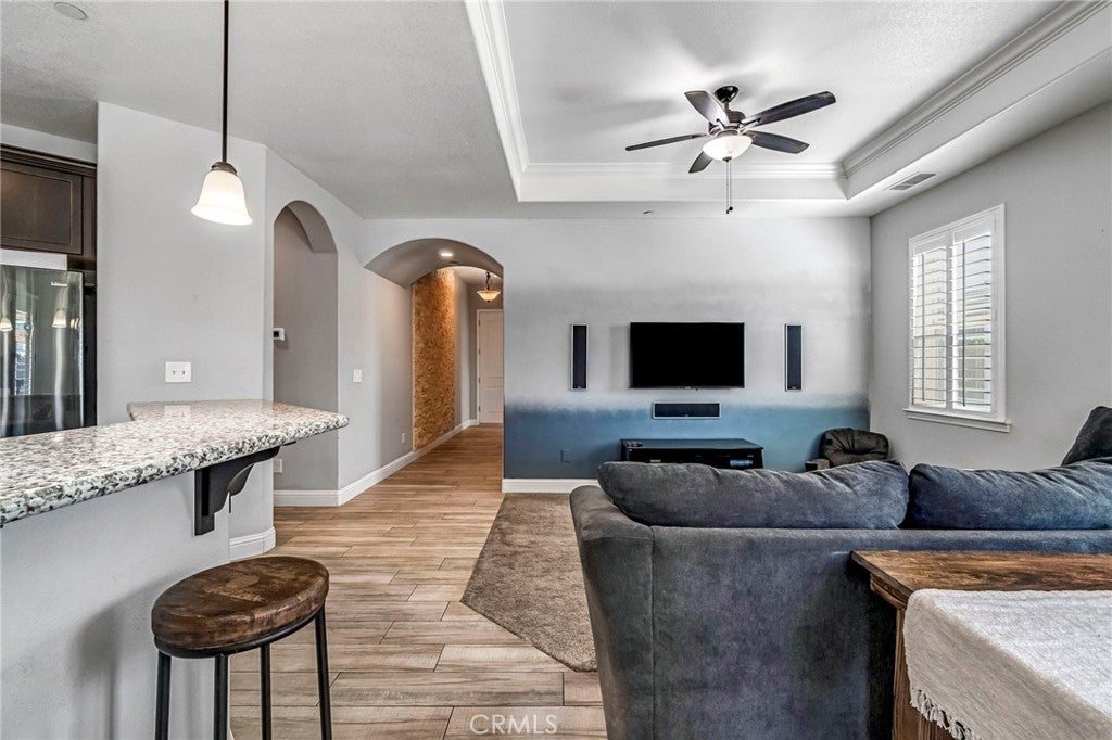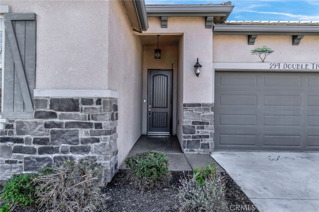 Located at 294 Double Tree Court in Madera, this well-maintained single-story home offers 3 bedrooms, 2 bathrooms, and a functional layout situated on a cul-de-sac lot in the Lions Town & Country Park area. The home features an open floor plan connecting the living room and kitchen. The living area includes tray ceilings and crown molding, adding architectural detail to the main living space. The kitchen is equipped with granite countertops, shaker-style cabinetry, stainless steel appliances, tile backsplash, breakfast bar seating, and a peninsula, along with a pantry for additional storage. The primary bedroom is positioned separately from the other bedrooms and includes a walk-in closet and private bathroom with double vanity. Two additional bedrooms and a full bathroom are located near the front of the home. Additional interior features include a dedicated laundry room and a tiled roof. The backyard offers multiple outdoor living areas, including patio spaces, a large gazebo/pergola with electrical hookups and ceiling fans, and an outdoor kitchen with built-in BBQ. The landscaped yard provides flexible space for outdoor use. The garage includes epoxy flooring, a built-in workbench, and a utility sink. Located near Lions Town & Country Park, shopping, dining, and local amenities, this property combines interior comfort with versatile outdoor features. Buyer to verify all information to their​​‌​​​​‌​​‌‌​​‌​​​‌‌​​​​​​‌‌​‌‌​​‌​​​‌‌​ satisfaction.