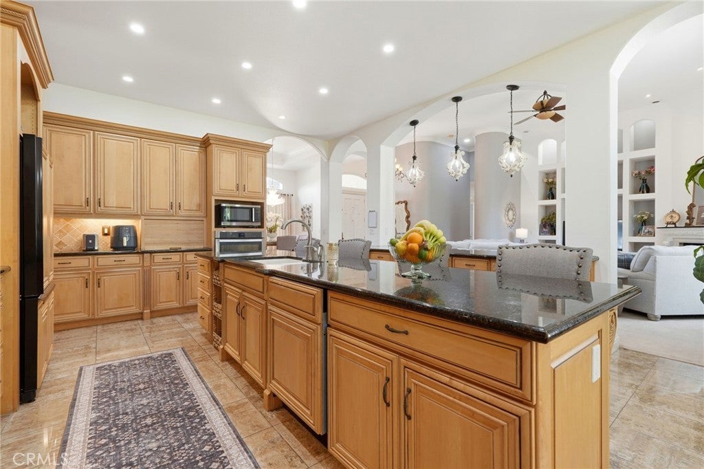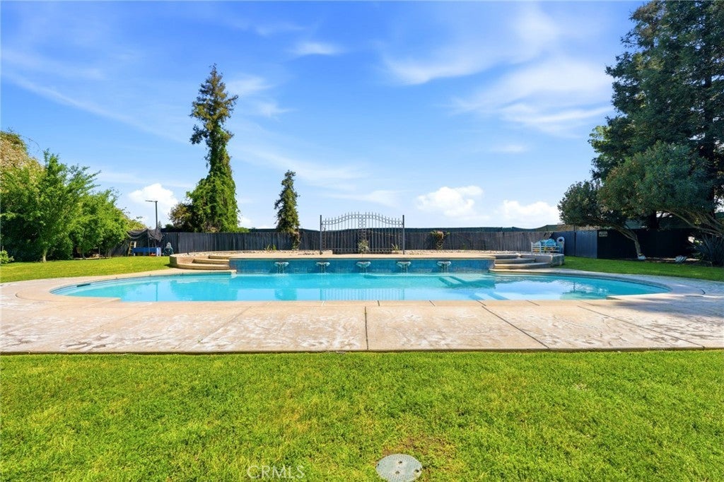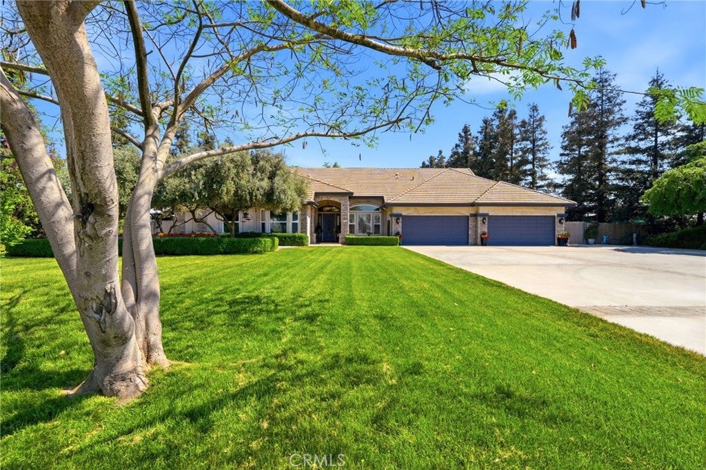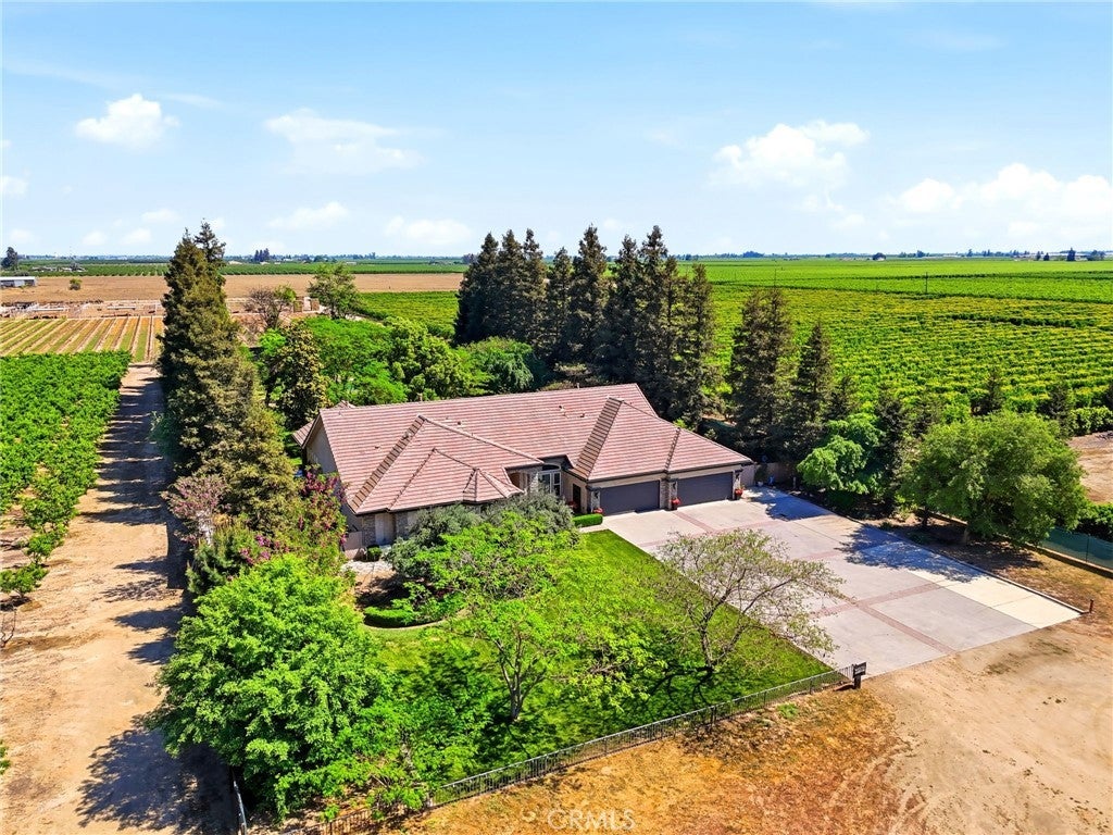 Experience refined country living in this stunning 3,600 sqft custom built estate set on 2.36 private acres of peaceful countryside, located near the city of Kingsburg. Designed with both luxury and functionality in mind, this exceptional home offers 4 bedroom, 3 full bathrooms, and an extra room perfect for an office or game room, creating the perfect balance of comfort and entertainment. Step inside to soaring 14-foof ceilings in the grand living room, highlighted by a beautiful gas fireplace and abundant natural light. The formal dining area is elegantly appointed with a breathtaking Schonbek crystal chandelier, adding timeless sophistication for hosting memorable gatherings. The chef's kitchen is truly a showpiece, featuring dual built-in refrigerators with custom panel overlays, expansive counter space, premium cabinetry, and an oversized walk-in pantry designed for ultimate organization. A large indoor laundry room adds everyday convenience. Retreat to the luxurious primary suite, where comfort meets indulgence. Enjoy a cozy gas fireplace, spa-like bathroom with integrated sound system and separate his-and-her walk-in closets. Every additional bedroom also features its own walk-in closet, ensuring generous storage throughout. This home is equipped with premium amenities including:whole house vacuum system, tankless water heater, and a 46 panel owned solar system for energy efficiency. Outdoors, the property transforms into a park-like sanctuary. Mature shade trees and fruit trees create a serene backdrop to the custom swimming pool, ideal for entertaining or relaxing. Dedicated outdoor bathrooms enhance convenience for poolside gatherings. On clear days, enjoy beautiful eastern views of the Sierra Nevada mountains, and take advantage of the property's close proximity to the scenic Kings River. Offering the tranquility of country living with modern luxury comforts, This extraordinary property delivers privacy, space, and resort-style living all in one remarkable estate!