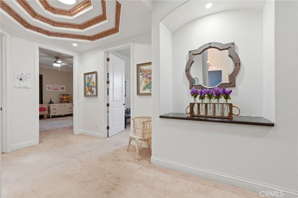 • Interior FeaturesBuilt-in Features, Ceiling Fan(s), Central Vacuum, Separate/Formal Dining Room, Eat-in Kitchen, Granite Counters, High Ceilings, All Bedrooms Down, Entrance Foyer, Primary Suite, Walk-In Pantry, Walk-In Closet(s), Pull Down Attic Stairs