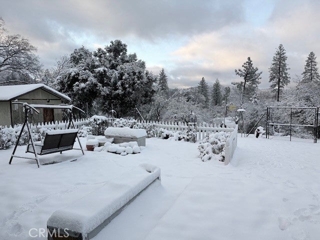 Mountain Luxury Meets Modern Comfort! This stunning, 4-bedroom, 3-bath custom home was completely remodeled from the ground up in 2022. Designed with an open-concept lifestyle in mind, the 1,488 sq. ft. single-level floor plan features two primary suites one at each end of the home offering ideal privacy for extended family, guests, or a high-potential vacation rental. The heart of the home is a cozy great room where a custom kitchen, featuring luxurious hickory cabinets and granite countertops, flows seamlessly into the dining and living areas. Enjoy the warmth of the wood-burning stove or the efficiency of a brand-new HVAC system and whole-house fan. LED ceiling fans are in all rooms for additional comfort. Outdoor Living & Highlights: Pine, cedar and manzaita trees. Dual Views: The East suite opens to a vibrant rose garden with views of Goat Mountain, Shut Eye and the Sierra Mountains, while the West suite leads to a new redwood deck perfect for sunset watching. Entertainer's Dream: Four access doors lead to the expansive backyard and deck, complemented by a granite breakfast bar that seats five. Bonus Structures: Includes a 12'x22' powered workshop, a new 20' shipping container, and a 16' wood shed. The Lot: Over 1.1 acres on a quiet cul-de-sac with a circular driveway and deer-proof fencing to protect your lush landscaping. Located just 5 minutes from Bass Lake, 6 minutes from town, and 20 minutes from Yosemite's South Gate. At an elevation of 3,750', you'll experience the beauty of all four seasons, including snow! Furnishings are included at no additional value.