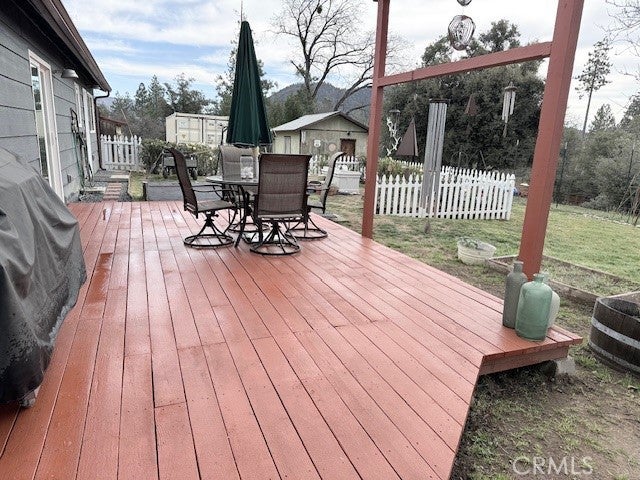 Mountain Luxury Meets Modern Comfort! This stunning, 4-bedroom, 3-bath custom home was completely remodeled from the ground up in 2022. Designed with an open-concept lifestyle in mind, the 1,488 sq. ft. single-level floor plan features two primary suites one at each end of the home offering ideal privacy for extended family, guests, or a high-potential vacation rental. The heart of the home is a cozy great room where a custom kitchen, featuring luxurious hickory cabinets and granite countertops, flows seamlessly into the dining and living areas. Enjoy the warmth of the wood-burning stove or the efficiency of a brand-new HVAC system and whole-house fan. LED ceiling fans are in all rooms for additional comfort. Outdoor Living & Highlights: Pine, cedar and manzaita trees. Dual Views: The East suite opens to a vibrant rose garden with views of Goat Mountain, Shut Eye and the Sierra Mountains, while the West suite leads to a new redwood deck perfect for sunset watching. Entertainer's Dream: Four access doors lead to the expansive backyard and deck, complemented by a granite breakfast bar that seats five. Bonus Structures: Includes a 12'x22' powered workshop, a new 20' shipping container, and a 16' wood shed. The Lot: Over 1.1 acres on a quiet cul-de-sac with a circular driveway and deer-proof fencing to protect your lush landscaping. Located just 5 minutes from Bass Lake, 6 minutes from town, and 20 minutes from Yosemite's South Gate. At an elevation of 3,750', you'll experience the beauty of all four seasons, including snow! Furnishings are included at no additional value.