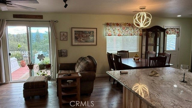 - Interior FeaturesBreakfast Bar, Built-in Features, Ceiling Fan(s), Separate/Formal Dining Room, Granite Counters, In-Law Floorplan, Living Room Deck Attached, Open Floorplan, Pantry, Partially Furnished, Recessed Lighting, All Bedrooms Down, Bedroom on Main Level, Main Level Primary, Primary Suite, Utility Room, Walk-In Closet(s), Workshop, Multiple Primary Suites, Storage, Track Lighting