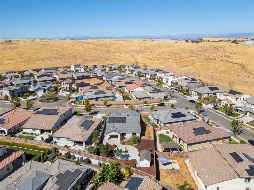 Welcome to Tesoro Viejo, where everyday living feels like a luxury resort only this time, you never have to check out. This award-winning, master-planned community is one of the Central Valley's most sought-after neighborhoods, known for its vibrant lifestyle, scenic surroundings, and strong sense of community. Residents enjoy resort-style amenities including sparkling pools, a relaxing spa, a state-of-the-art fitness center, and the stunning 15,000 sq ft Ranch House clubhouse at the heart of it all. Explore over 15 miles of scenic walking, hiking, and biking trails, enjoy the weekly farmers market, and take part in year-round community events that make Tesoro Viejo truly special. Whether you're unwinding at the Ranch House lounge, grabbing your morning latte at AXIS Coffee Bar, or meeting friends for a bite at the on-site eatery, this is a lifestyle designed to be enjoyed. Even high-speed internet is included in the HOA, adding extra convenience to everyday living. And as incredible as the community is, the home itself is just as impressive. Built in 2023, this stunning 4-bedroom, 3-bath home is better than new and sits on one of the largest lots in the neighborhood. The open layout features soaring vaulted ceilings, beautiful wood-look tile flooring throughout the main living areas, and plush carpet in the bedrooms for added comfort. Tucked privately off the main living space, the primary suite offers a spacious retreat complete with dual sinks, a soaking tub, walk-in shower, and an impressively large walk-in closet. The kitchen showcases extended countertops, an upgraded feature perfect for both everyday living and entertaining. And with owned solar, this home is as efficient as it is beautiful. Outside the backyard is a rare find in Tesoro Viejo. Sitting on an expansive 9,147 sq ft lot, the yard is fully finished and thoughtfully designed with fruit trees including fig, guava, grapes, and two citrus trees, along with irrigation ready for a future vegetable garden. There's even a permitted 16x10 shed with electrical, ideal for a workshop, studio, or additional storage. This home isn't just a place to live, it's a lifestyle upgrade. Call today to schedule your private showing!