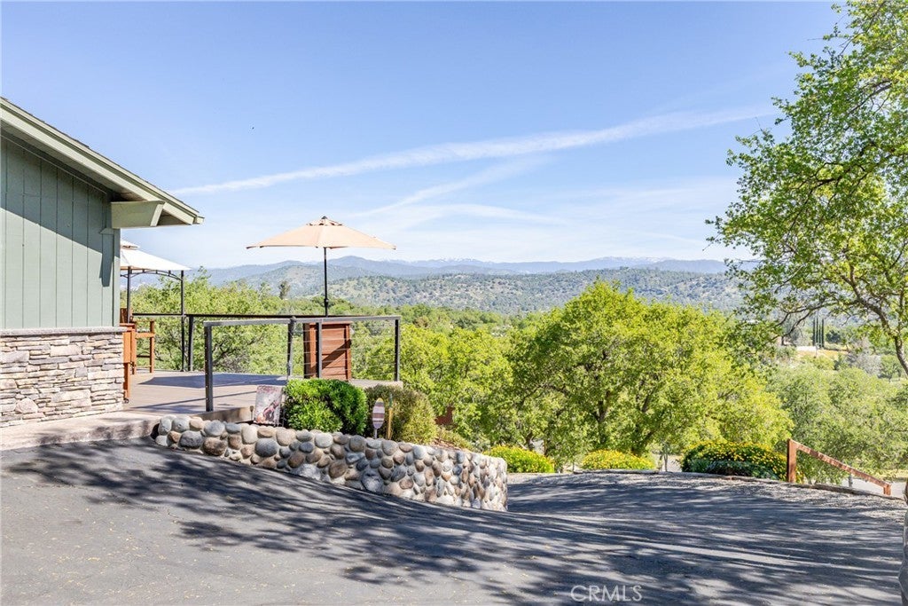 Located in the highly desirable Yosemite Lakes Park, this exceptional property offers privacy, quality, and unmatched views near the top of the mountain. An immaculate, manicured driveway lined with retaining walls and landscaping welcome you to this estate-style home featuring covered RV parking for two rigs, a side carport, and two storage sheds (10x6 and 7x7). Enjoy breathtaking, million-dollar views from the expansive low-maintenance composite front deck with railing spanning the entire front of the home. The rear features a finished porch with patio covering, LED lighting, metal roofing, and rain gutters extending across nearly the full length of the house. Inside, you'll find extensive updates throughout, including custom barn doors, a remodeled kitchen and bathrooms, new Karndean LVT flooring throughout, and an EPA-compliant wood-burning stove. The home is equipped with owned solar free and clear for added efficiency. A rare opportunity this is truly one-of-a-kind within Yosemite Lakes Park.