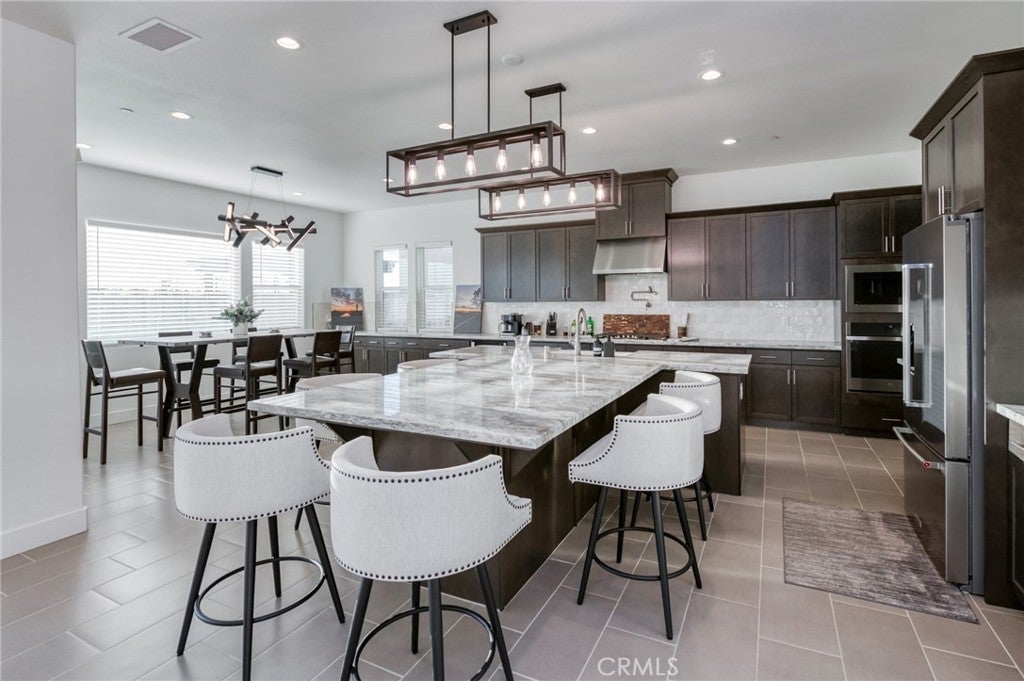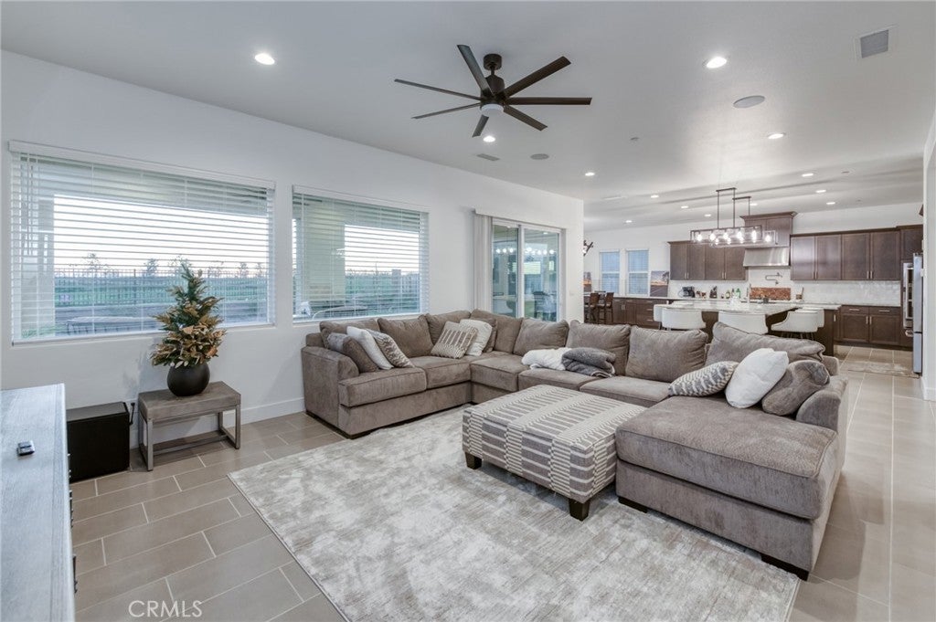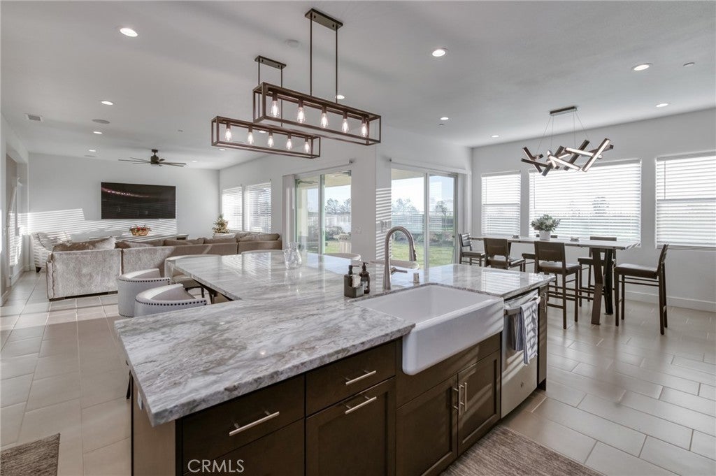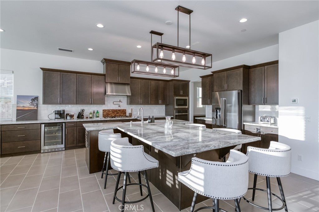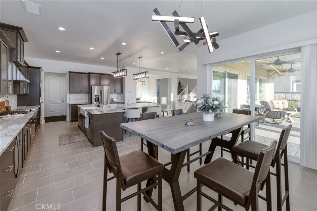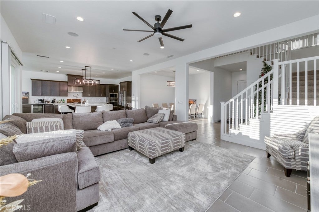 Stunning McCaffrey Thomas model home built in 2024, offering 3,880 sq ft of thoughtfully designed living space. This beautifully crafted home features 4 spacious bedrooms, 3.5 bathrooms, plus a dedicated office, ideal for today's work-from-home lifestyle. The heart of the home is the designer kitchen with an oversized island, extended cabinetry for ample storage, custom light fixtures, and seamless flow into the open living and dining areas, perfect for entertaining! This home is extremely well kept and showcases high-end finishes throughout. Additional highlights include owned solar, EV charging, a spacious 3-car garage and the rare opportunity to purchase fully furnished, making this truly move-in ready. Every detail reflects the quality and craftsmanship expected from a McCaffrey Thomas model home, sitting on a ~8000sqft lot with unbeatable sunset views. A must-see property that blends modern luxury, efficiency, and comfort while blending into the perfect family lifestyle that the Tesoro Viejo community is known to offer!