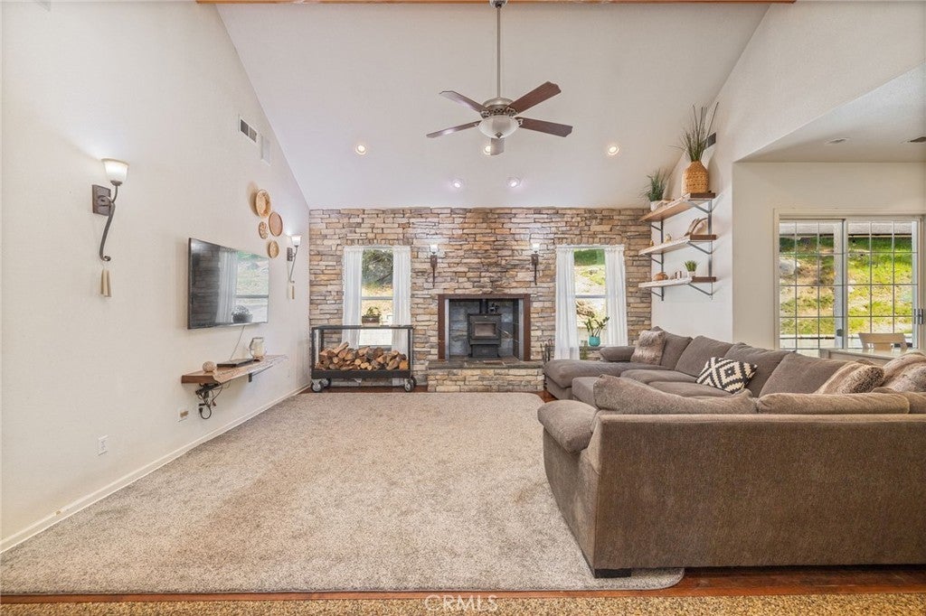 Private 4.97-Acre Retreat with Spacious Living, Luxurious Primary Suite & Unique Outdoor Features!! Set on 4.97 usable acres, this beautifully maintained 3-bedroom, 2-bathroom home offers an exceptional blend of privacy, space, and lifestyle. Built in 2004 and spanning approximately 2,429 sq ft, the property provides a peaceful setting with room to live, relax, and grow. Inside, soaring high ceilings create a bright, open atmosphere, while a cozy wood-burning stove anchors the main living area with warmth and charm. The versatile floor plan includes a bonus media room—perfect for a home theater, office, or additional living space. The spacious primary suite serves as a true retreat, featuring an en suite bathroom complete with a soaking tub, separate shower, private toilet room, and a walk-in closet. Step outside and take in the full potential of nearly 5 usable acres—ideal for recreation, gardening, or simply enjoying the natural surroundings. A custom treehouse adds a unique and playful element, while the chicken coop offers an opportunity for a more self-sufficient lifestyle. Private well has sediment filter and water softening system. Additional highlights include a 2-car attached garage with built-in storage for added convenience and organization, wood shed and owned propane tank. Offering a rare combination of usable land, functional living space, and distinctive amenities, this property is a standout opportunity for those seeking both comfort and freedom.