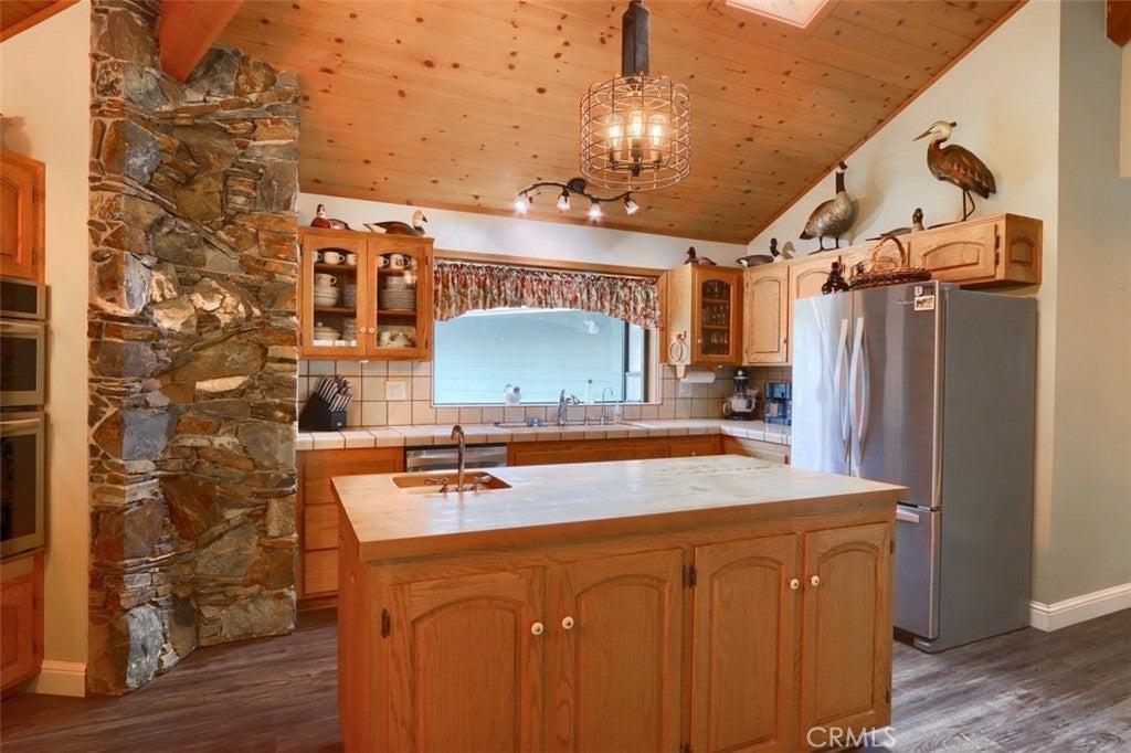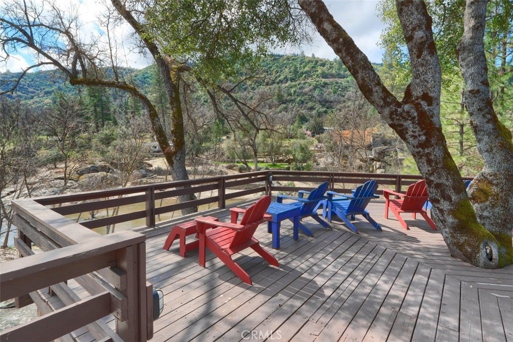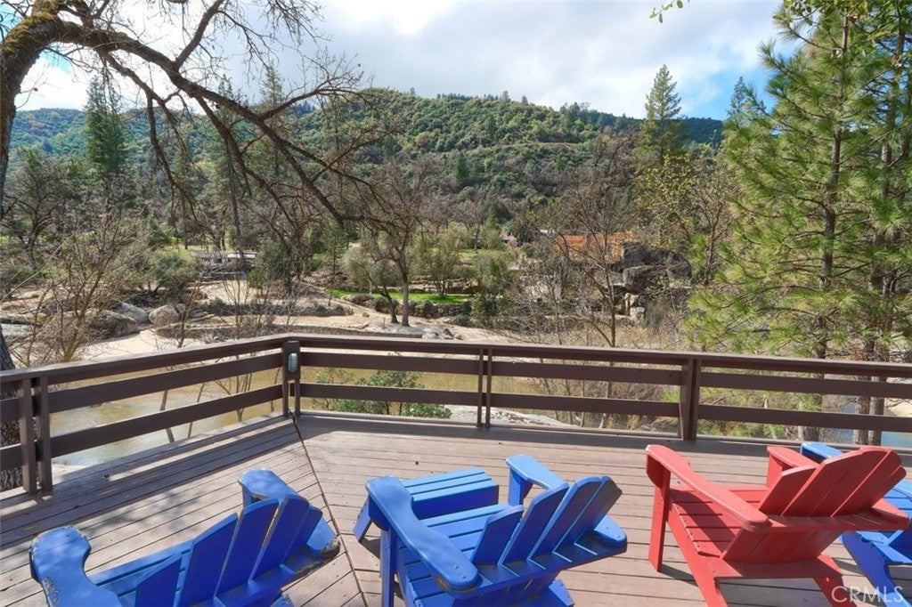 Nestled on over 10 private acres in Ahwahnee, this stunning custom-built 3-bedroom, 2-bath, 2,600 sq ft home offers a rare blend of natural beauty,, privacy, and comfort. Perfectly positioned at the end of a quiet cul-de-sac, the property is bordered by the scenic Fresno River on one side and the peaceful River Creek Golf Course on the other. The grounds are beautifully manicured, featuring mature trees, stricking rock outcroppings, and even your own private beach area along the river--creating a truly serene tretreat. A detached shop and RV parking with full hook-ups add both conveneince and versatility. Inside, the home showcases warm, rustic elegance with tongue-and-groove beamed ceilings and a stunning custom rock hearth as a focal point. The spacious kitchen is designed for both function and gathering, featuring a large center island and counter seating area. Step outside onto the expansive deck, complete with a relaxing spa, where you can take in breathtaking views of the river and surrounding mountain range. Ideally located just under 10 minutes from shopping and amenities in Oakhurst, this home also offers easy access to outdoor recreation--only 20 minutes to Bass Lake and approximately 40 minutes to the entrance of Yosemite National Park. This is more than a home--it's a private mountain sanctuary where nature, comfort, and convenience come together.