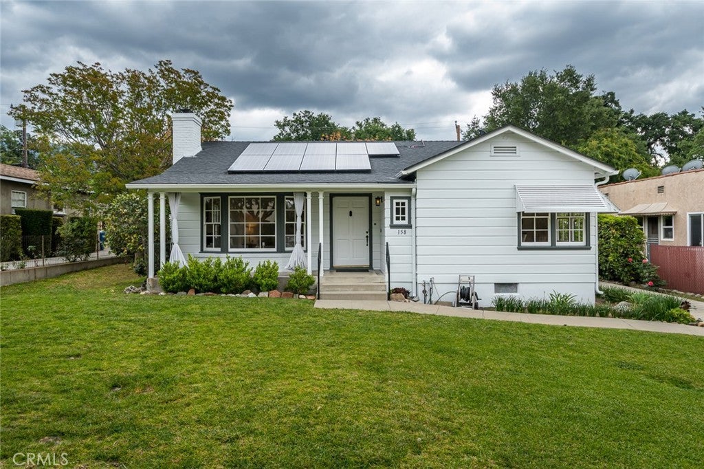 Step into timeless elegance with this beautifully maintained vintage traditional home. Enjoy the warmth of original hardwood floors, a cozy fireplace, and a bright bay window that floods the living space with natural light. The formal dining room is perfect for entertaining, and modern solar panels add an eco-friendly touch. The vintage kitchen features original tile as well as a beautiful wood counter top and glass front display cabinets. Outside, a spacious flat yard offers room to relax or garden, complete with mature avocado trees for your own fresh harvest. The spacious yard offers ADU opportunities. Located a block above Foothill you enjoy close proximity to the vibrant Myrtle Ave.