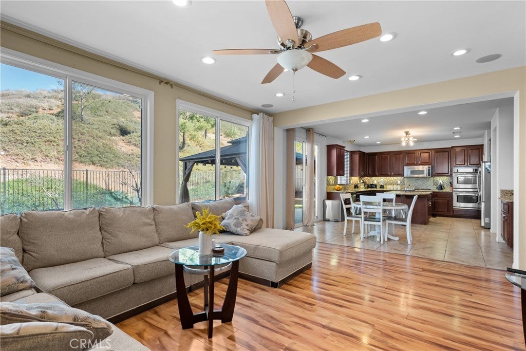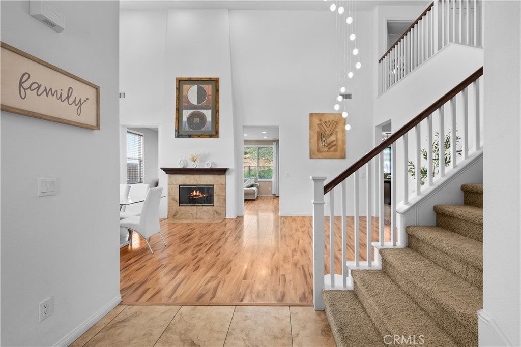 Welcome to this gorgeous 2-story 4-bedroom, 3-bathroom home with views of the hillside in the desirable Canyon Hills community, boasting approx. 3023 SF of thoughtfully designed living space, sitting on approx. 6098 SF lot. The open floor plan flawlessly integrates functionality and style, featuring a gourmet kitchen with granite countertops, maple cabinets, stainless steel appliances, and a kitchen island. The first floor offers a bedroom, full bathroom, living room with soaring high ceilings, a cozy fireplace, and a kitchen opening into a light and bright family room. The second floor features a spacious prime bedroom with its fireplace, an ensuite bathroom with a jetted tub, separate shower, dual sink vanities, and His and Her walk-in closets. Additionally, on this level, there are two more guest bedrooms, a shared bathroom, a laundry room, and a relaxing family room in the loft. The loft area could also be perfect for a game room, kids’ space, or office. There’s direct access from a 3-car garage and ample parking on the driveway and the street. The outdoors offers desirable privacy and is perfect for enjoying evenings with a glass of wine, equally great for relaxing with family and hosting guests. The seller is downsizing and most of the furniture is also for sale. Beyond the great features of this beautiful home, Canyon Hills offers an unparalleled lifestyle —featuring 3 resort-style pools with parks, an 18-acre sports park, dog parks, hiking trails, tennis courts, and highly acclaimed Blue Ribbon elementary and middle schools. Priced to sell, this home offers excellent value in a desirable location. Don't miss the opportunity to make 35424 Saddle Hill Rd your new home. Schedule a viewing today and experience the charm and comfort this Canyon Hills residence has to offer.