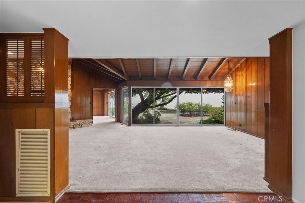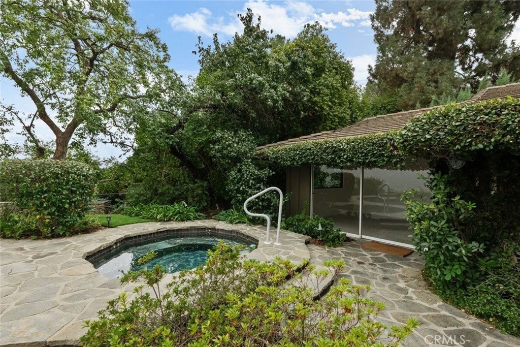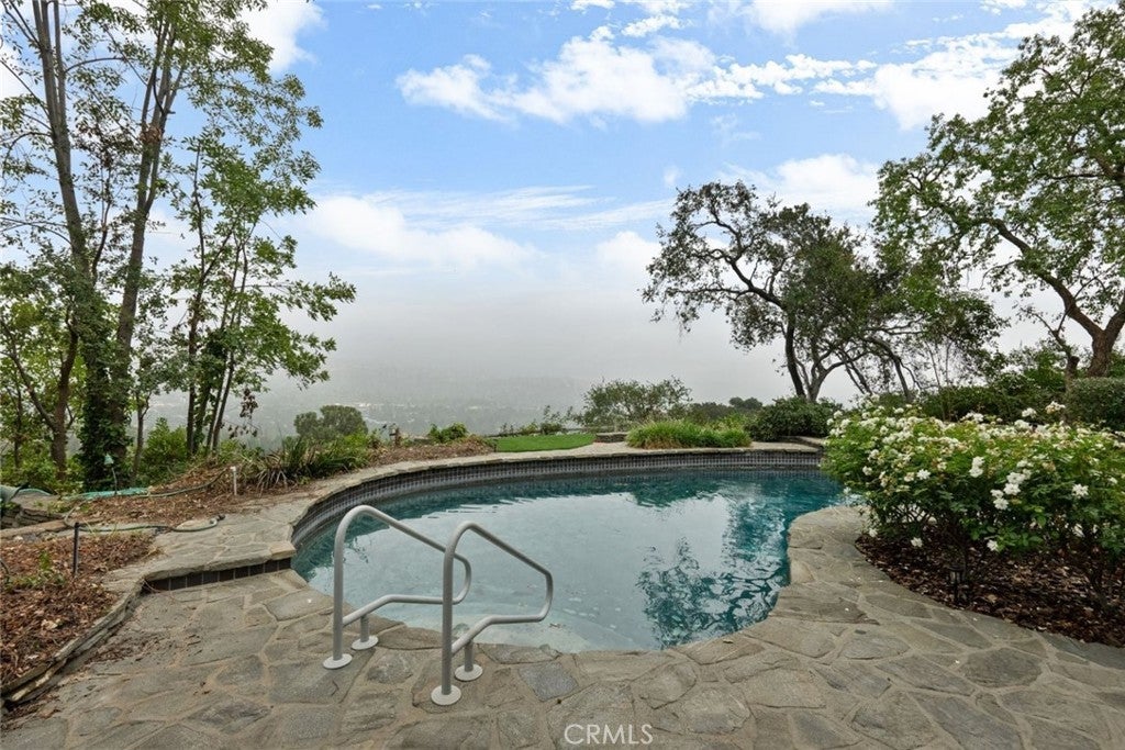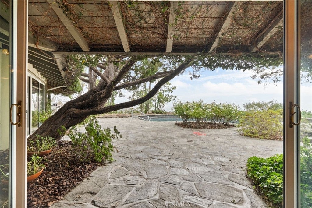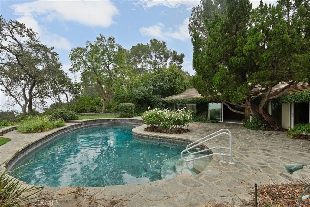 Welcome to 1218 Flintridge Avenue, a breathtaking sanctuary nestled in the picturesque city of La Canada Flintridge! This stunning mid-century modern single-family pool home exudes elegance and comfort, featuring 3 generously sized bedrooms and 3 beautifully designed bathrooms that seamlessly blend contemporary flair with inviting warmth. Set on an expansive 56,866 sq. ft. lot, this property is adorned with lush greenery, creating the perfect retreat for relaxation. A long, private driveway leads to a gated entry, providing ample parking and ensuring ultimate privacy. The meticulously landscaped grounds offer panoramic views of the majestic mountains, enhancing the serene atmosphere. Inside, the residence showcases enchanting beamed coffered ceilings and ambient lighting that create a bright and airy environment, complemented by charming ceiling fans that provide a refreshing breeze. The expansive living room beckons relaxation, complete with a cozy brick-walled fireplace inviting you to unwind. Plush carpeting graces the living room, dining room, and bedrooms, while sturdy hardwood flooring flows throughout the remainder of the home. The kitchen is a true culinary masterpiece, boasting a breakfast counter, built-in electric stovetop, double ovens, stylish range hood, dishwasher, and generous cabinet space—transforming it into an entertainer's delight. The inviting dining area is perfect for enjoying meals and is conveniently located near a tastefully designed half bathroom. The bright and airy bedrooms offer ample space for personalization, with the primary suite featuring a luxurious en-suite bathroom that includes a chic double sink vanity, spacious walk-in shower, separate bathtub, and bidet. The additional bathrooms showcase relaxing shower-in-tub combinations and another walk-in shower, while a dedicated laundry area with built-in storage enhances functionality throughout the home. Outside, your private backyard oasis awaits, complete with a sparkling pool and spa overlooking the city, providing breathtaking views, along with a private BBQ area and ample greenery, perfect for savoring beautiful weather and unwinding in tranquility. Located in a prime area, this home offers an unparalleled sense of privacy surrounded by lush landscaping while still being a short drive away from an array of restaurants and shopping centers, ensuring both convenience and tranquility.