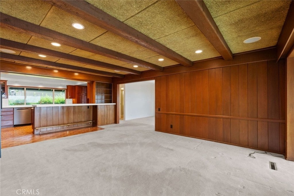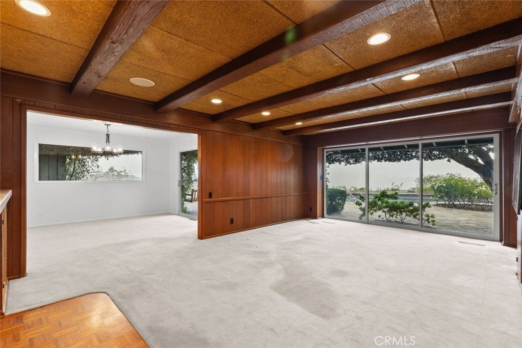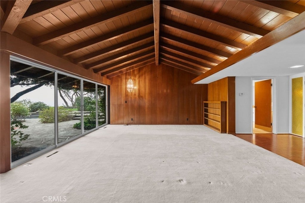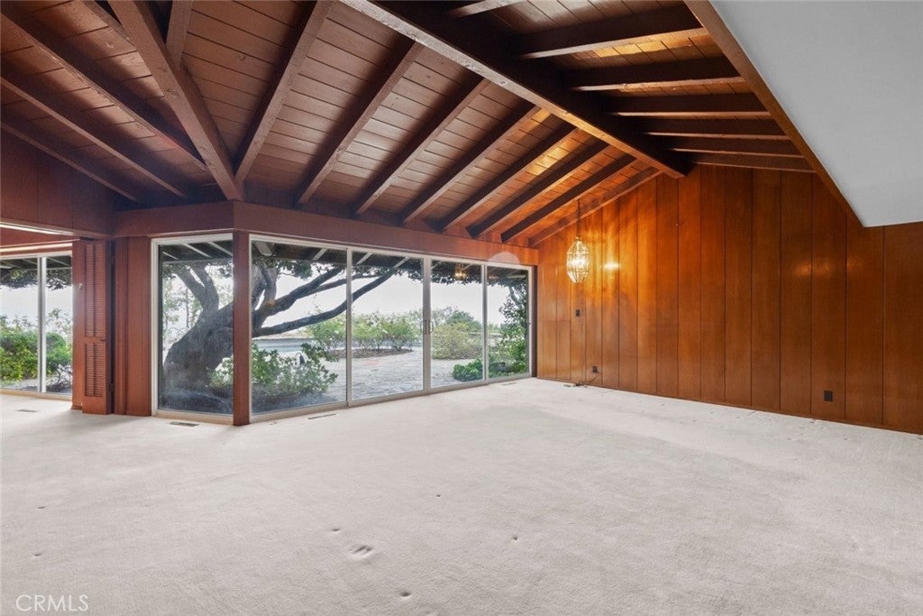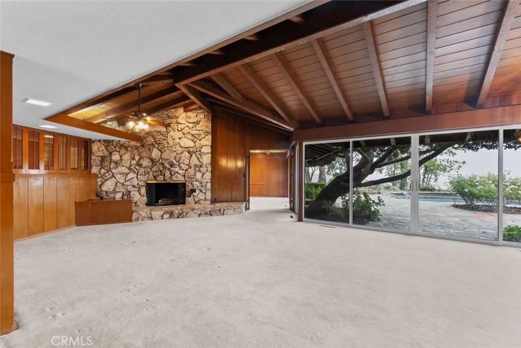 Welcome to 1218 Flintridge Avenue, a breathtaking sanctuary nestled in the picturesque city of La Canada Flintridge! This stunning mid-century modern single-family pool home exudes elegance and comfort, featuring 3 generously sized bedrooms and 3 beautifully designed bathrooms that seamlessly blend contemporary flair with inviting warmth. Set on an expansive 56,866 sq. ft. lot, this property is adorned with lush greenery, creating the perfect retreat for relaxation. A long, private driveway leads to a gated entry, providing ample parking and ensuring ultimate privacy. The meticulously landscaped grounds offer panoramic views of the majestic mountains, enhancing the serene atmosphere. Inside, the residence showcases enchanting beamed coffered ceilings and ambient lighting that create a bright and airy environment, complemented by charming ceiling fans that provide a refreshing breeze. The expansive living room beckons relaxation, complete with a cozy brick-walled fireplace inviting you to unwind. Plush carpeting graces the living room, dining room, and bedrooms, while sturdy hardwood flooring flows throughout the remainder of the home. The kitchen is a true culinary masterpiece, boasting a breakfast counter, built-in electric stovetop, double ovens, stylish range hood, dishwasher, and generous cabinet space—transforming it into an entertainer's delight. The inviting dining area is perfect for enjoying meals and is conveniently located near a tastefully designed half bathroom. The bright and airy bedrooms offer ample space for personalization, with the primary suite featuring a luxurious en-suite bathroom that includes a chic double sink vanity, spacious walk-in shower, separate bathtub, and bidet. The additional bathrooms showcase relaxing shower-in-tub combinations and another walk-in shower, while a dedicated laundry area with built-in storage enhances functionality throughout the home. Outside, your private backyard oasis awaits, complete with a sparkling pool and spa overlooking the city, providing breathtaking views, along with a private BBQ area and ample greenery, perfect for savoring beautiful weather and unwinding in tranquility. Located in a prime area, this home offers an unparalleled sense of privacy surrounded by lush landscaping while still being a short drive away from an array of restaurants and shopping centers, ensuring both convenience and tranquility.