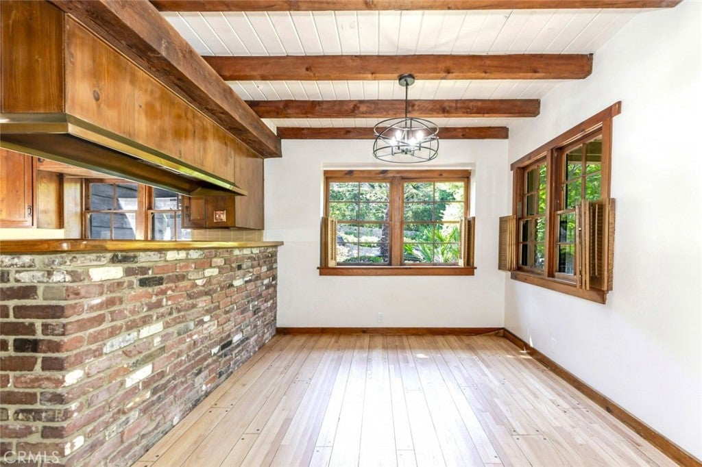 Welcome to 3853 Eureka Drive, a beautifully crafted 4-bedroom, 2-bathroom home nestled in the heart of highly sought-after Studio City. Boasting 2,323 sq ft of living space across two spacious stories, this warm and inviting residence blends classic California charm with thoughtful architectural details. Inside you'll discover exposed beamed ceilings, a cozy fireplace, and rich wood accents that create a sense of warmth and character throughout the home. The living and dining areas offer an ideal layout for both relaxing and entertaining, while the abundance of natural light enhances the home's inviting ambiance. Upstairs, generously sized bedrooms offer privacy and comfort, perfect for families or those needing flexible space for a home office or guest rooms. The 2-car garage provides convenient parking and additional storage. Outside, enjoy the peaceful residential vibe of Eureka Drive, just minutes from top-rated schools, local dining, boutiques, and the vibrant culture of Ventura Blvd. Whether you're looking to move right in or personalize to your taste, this rare Studio City gem is full of potential and timeless appeal.