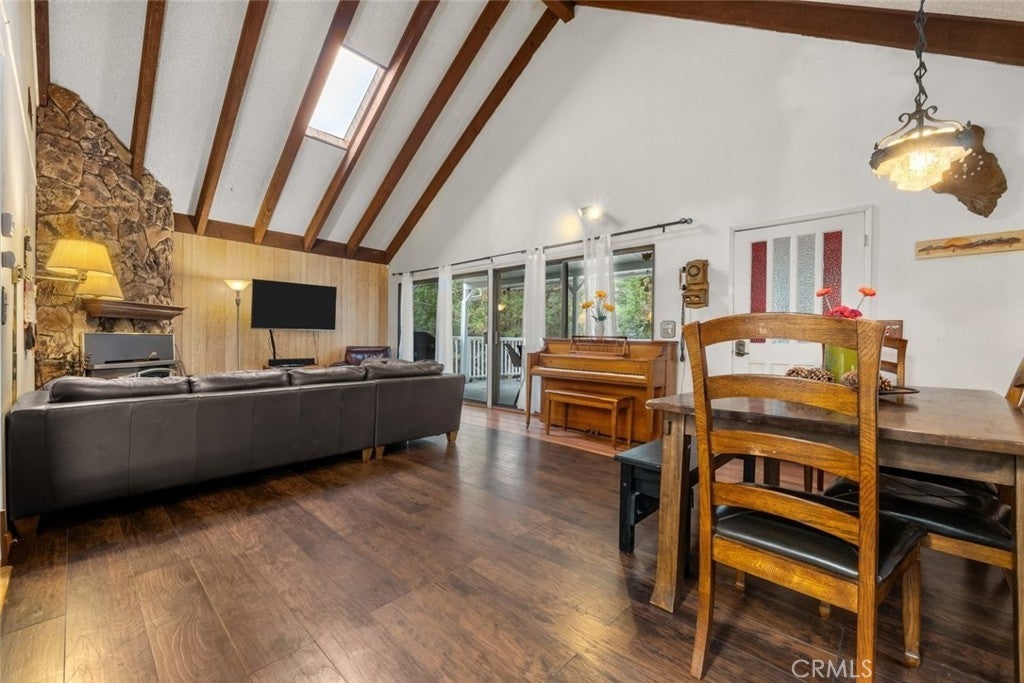 Charming 3-Bedroom Cabin with Private Loft Nestled in the desirable Fox Farm neighborhood, this cozy yet spacious 3-bedroom, 2-bathroom cabin is full of mountain charm. The vaulted ceiling in the family room enhances the open, airy feel, while the wood-burning fireplace sets the stage for warm, inviting gatherings. The well-equipped kitchen boasts ample storage and flows into the dining area, offering plenty of space for hosting family and friends. Versatile Loft & Extra Living Space A unique private loft is accessible via a drop-down ladder inside or an exterior staircase, making it a fantastic bonus space—perfect as a kids' hideaway, guest quarters, or rental opportunity. Entertainment & Outdoor Living at Its Best Expansive covered deck over the garage—ideal for BBQs, entertaining, and soaking in the breathtaking mountain views Spacious garage area with a game room, work area, and ample storage 4-car detached garage with its own loft, offering even more flexibility for storage, hobbies, or additional living space Unbeatable Location & Amenities Situated on an oversized lot, this home provides plenty of parking for all your outdoor toys—whether it's an RV, boat, or extra vehicles. Conveniently located near: - Bear Mountain & Snow Summit: Skiing, snowboarding, and year-round outdoor fun - Restaurants & Shopping: Just minutes from great dining and retail options - Easy Winter Access: No hassle getting in and out, even in the snow Move-In Ready with Bonus Features! - Central heating & A/C for year-round comfort - Mature trees providing shade and privacy Don't Let This Opportunity Pass You By!