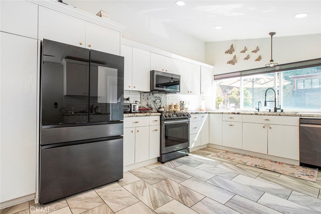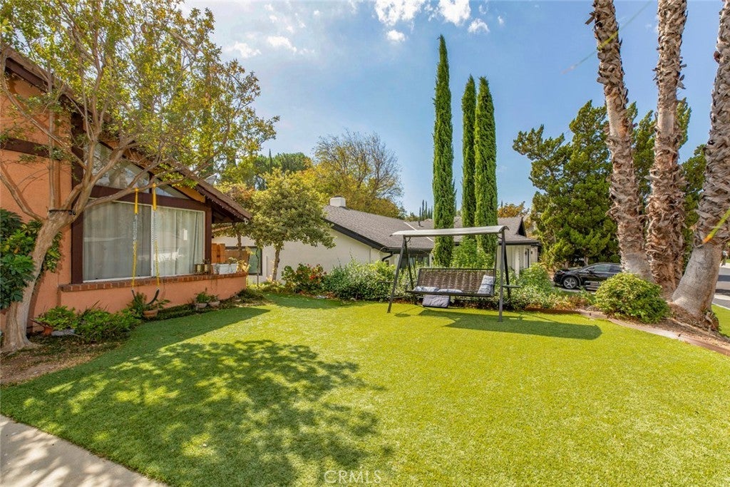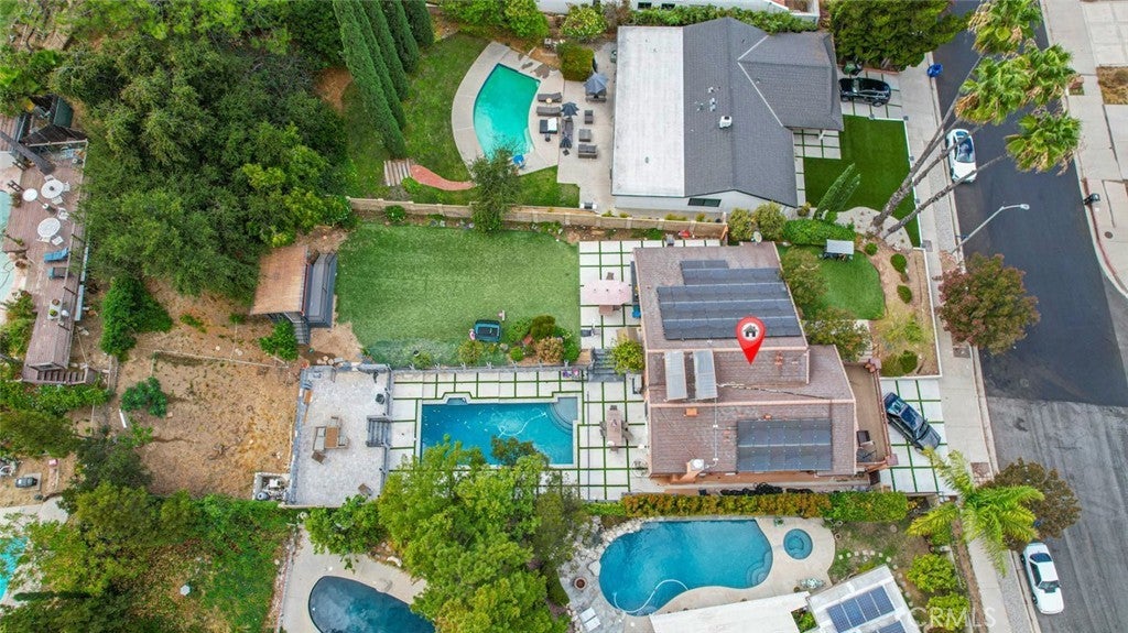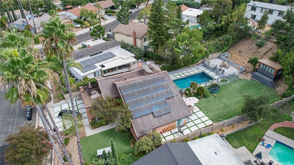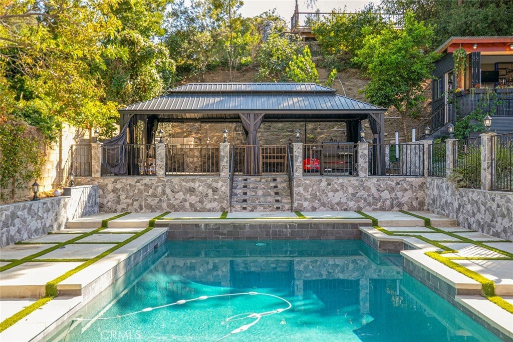 Welcome to this exquisitely remodeled home, featuring paid-off solar energy and breathtaking mountain views, nestled in the heart of Porter Ranch. No detail has been overlooked in this stunning residence. As you step inside, you’ll be greeted by elegant new tile flooring throughout, complemented by stylish vinyl flooring in all bedrooms. The guest restroom has been tastefully remodeled with all-new tile, while the family room boasts a modern electric fireplace surrounded by Italian tile. The popcorn ceilings have been removed to create an airy, contemporary feel, enhanced by upgraded recessed lighting in the kitchen, three bedrooms, and the family room. The home also includes an electric car charger for your convenience. A comprehensive water filtration system ensures fresh water throughout the house, and the driveway has been expanded with a fresh layout of artificial grass and a new retaining wall enhancing the curb appeal. The backyard is a true oasis, featuring a freshly renovated pool with a mini pebble finish (10 ft deep) and new plumbing with three return lines. A cozy Baja shelf has been added for the kids, along with brand-new equipment including a saltwater system, heater, pumps, and a water feature. Enjoy the convenience of wireless pool controls, two color-changing pool lights, a new skimmer, and an auto-fill feature. Surrounding the pool, you’ll find newly installed cement slabs and elegant tile-work, as well as a barrier wall and new gates for added safety. The patio area features brand-new pavers and lighting, creating an inviting space for relaxation and entertainment. A newly completed bar area awaits your finishing touches, boasting a custom $12,000 bi-fold window that perfectly frames the stunning views. The newly installed sprinkler system services the hillside and pool area, making this home a luxurious retreat. Bar area also includes quartz countertops, electric stove top, refrigerator, tv, sink and much more! Experience the perfect blend of sophistication and comfort in this remarkable property!
