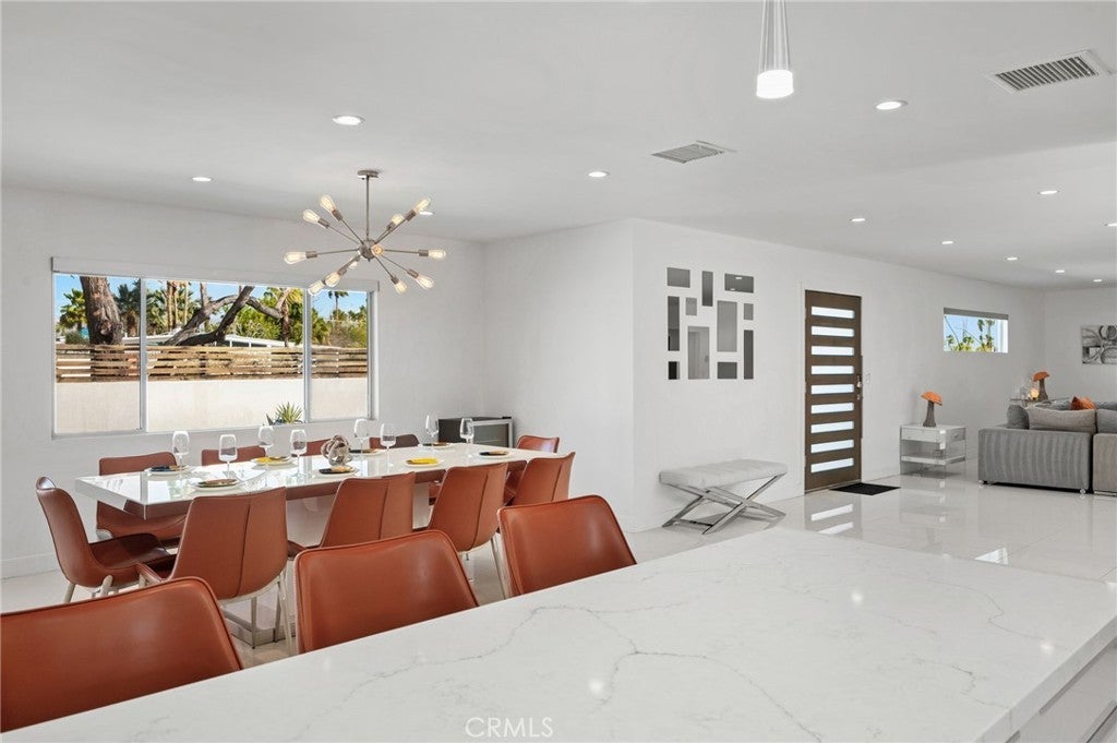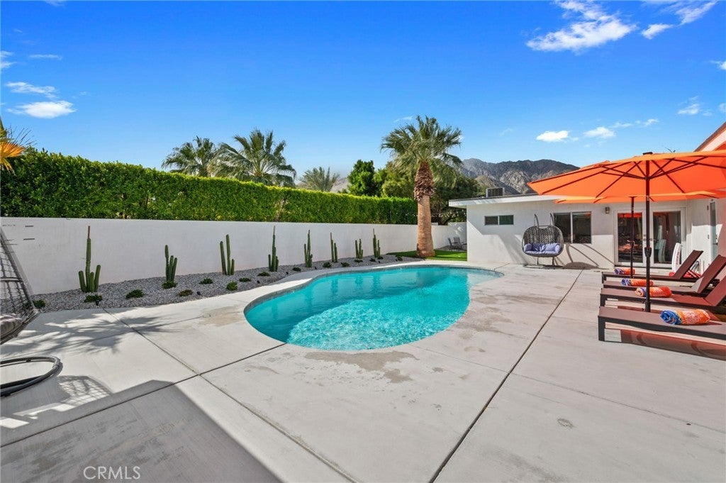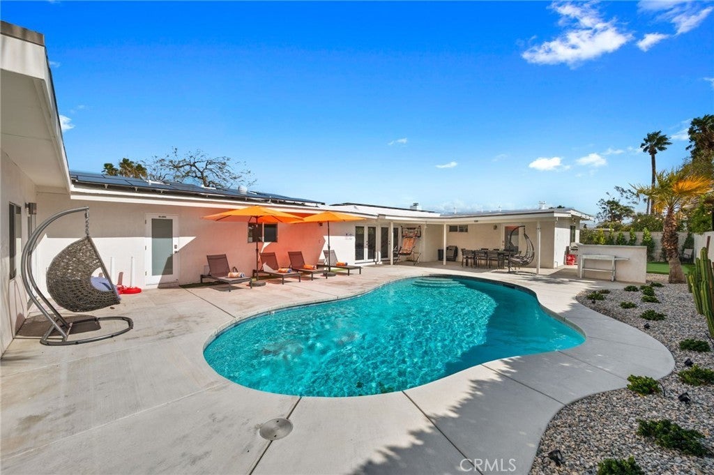 Resort-Style Living in Beautiful Palm Springs, CA Welcome to your private oasis in the heart of Palm Springs—where modern design meets resort-style comfort. Step through a custom front door into a beautifully updated home featuring a sleek, contemporary kitchen complete with stainless steel appliances, eye-catching backsplash, recessed lighting, and tile flooring that flows seamlessly through the kitchen, dining, and living areas. The living room boasts a grand fireplace and custom paintwork with elegant accent walls that bring warmth and personality to the space. Both bathrooms are tastefully remodeled with exquisite tile work, modern fixtures, and separate temperature controls for your comfort. French doors open to your stunning backyard retreat, perfect for entertaining or relaxing in style. Enjoy a sparkling pool with loungers, swaying palm trees, a mini-golf area, covered patio, built-in BBQ, and cozy fire pit—everything you need to live the ultimate desert lifestyle. This home’s modern, sleek design must be seen in person to be fully appreciated. Don’t miss your chance to own a slice of paradise in Palm Springs!