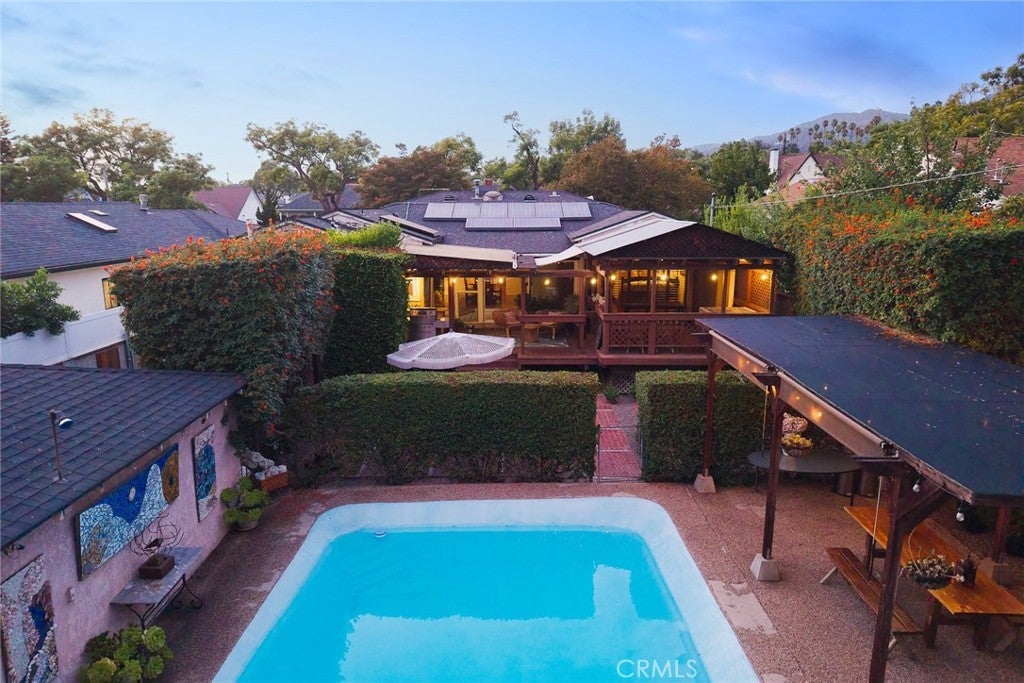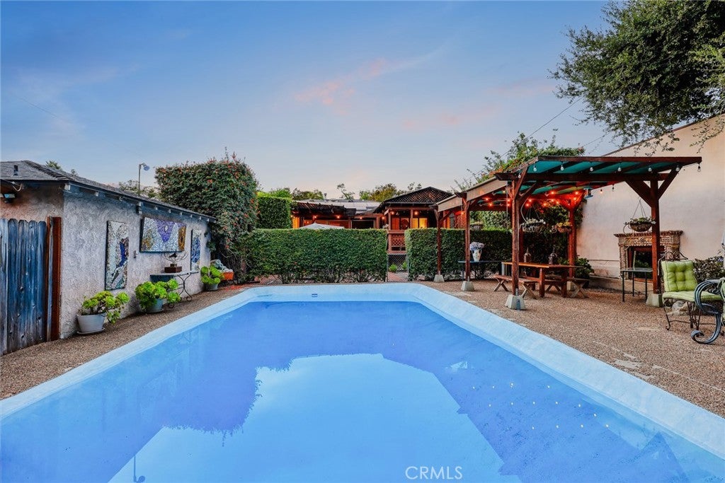 Welcome to this private oasis in Burbank’s sought-after 91501. This updated 3-bedroom, 2-bath home offers 1,739 sq ft of living space on a spacious 9,440 sq ft lot and blends timeless character with modern updates.. The large living room flows seamlessly into the dining area with views of the backyard and sparkling pool. The remodeled kitchen features a breakfast nook, high-end stainless steel appliances, and an adjacent laundry room with powder bath. Hardwood floors extend throughout the home, adding warmth and character. The primary bedroom opens directly to a private entertainer’s yard with a covered patio, a BBQ area, and a large pool. Mature fruit trees—plum, nectarine, lemon, and grapefruit—surround the property, providing shade, privacy, and seasonal harvests. A detached garage with extra space behind offers room for garden beds, storage, or a potential workspace. Located in the highly rated Burbank School District and just minutes from Downtown Burbank’s dining, shopping, and entertainment, this home offers a rare blend of charm, space, and location.