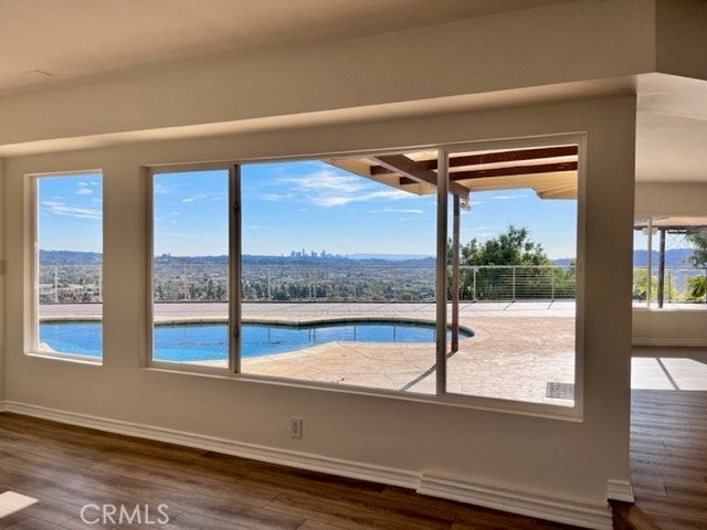Sprawling one story mid-century home with infinite views located in a very private setting in Glendale hills. This single family home is situated at the end of a cul-de-sac offering intimacy in a secure and private setting. Great home to scape to or entertain guests. The yard features a sparkling pool, outdoor grill, and uninterrupted views of downtown LA and Glendale. Minutes away from most major studios, Pasadena to the East and Burbank to the West. Open floor plan. Hardwood floors throughout. Updated kitchen and bathrooms. Central AC/Heat. Views from every room. The very private Primary Suite features a walk-in closet and a jetted tub. Two car attached garage and additional available parking in the front. California living at its best.