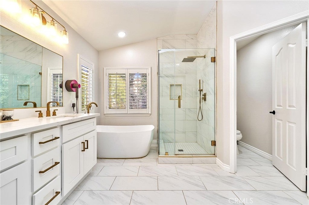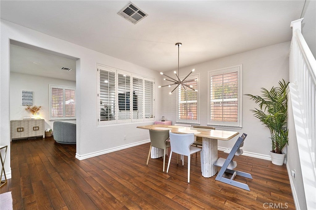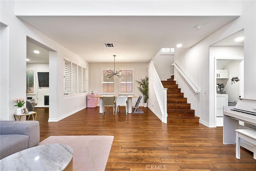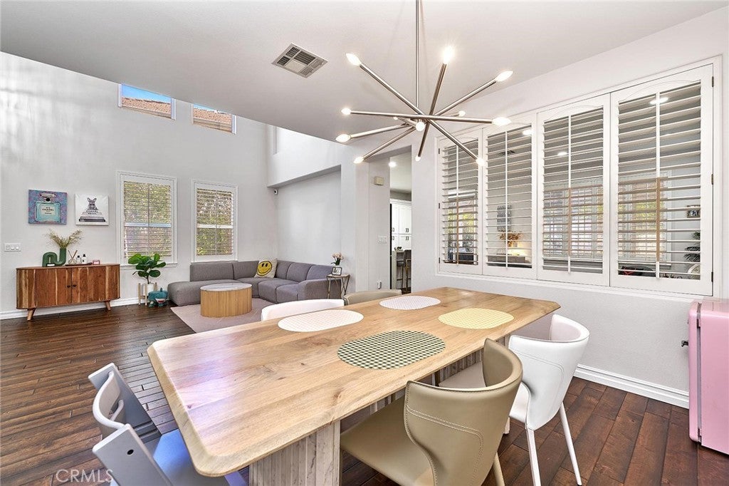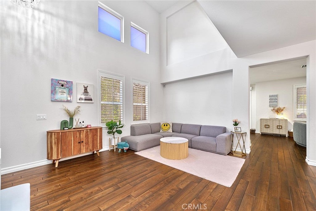 Welcome home to this stunning 3 bedrooms and 2.5 baths home w/Great curb appeal in Stevenson Ranch. Upon entering, you are greeted by a soaring high ceilings, creating an inviting and spacious ambiance. The home features a well-designed layout including a family room, a living room and a dining room, all seamlessly flowing together for easy living and entertaining. The chef's kitchen features a modern white shaker style cabinetry, quartz countertops, stainless steel appliances and a center island that opens beautifully to the family room. Upstairs, you will find 3 bedrooms and a loft, which can be used as a 4th bed. The Primary suite offers vaulted ceiling and a luxurious en-suite bath with double vanity, free standing tub and a separate shower. The spacious backyard with a covered patio is a perfect for entertaining. Located in a desirable neighborhood with top-rated schools, nearby parks, shopping, dining and quick freeway access.