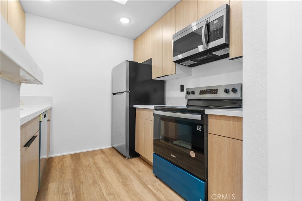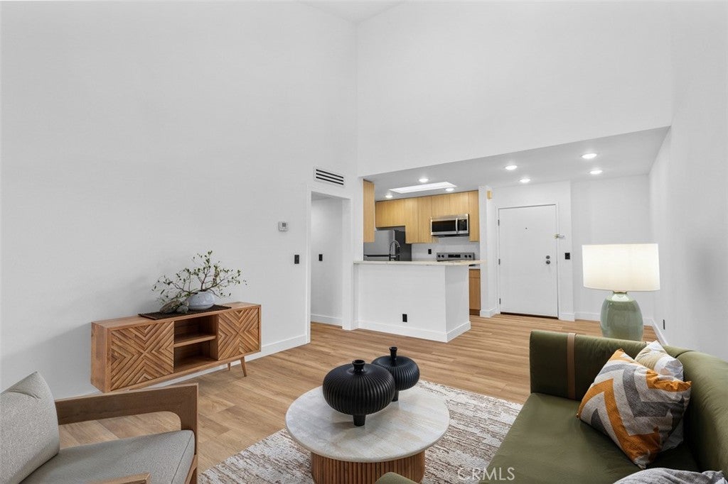 This beautifully remodeled top-floor one-bedroom condominium is nestled in the prestigious Catalina Terrace complex of Monterey Hills, minutes away to LA downtown or Pasadena easy access to 110 Freeway. Highlights include a spacious living room with a sliding glass door leading to a private balcony overlooking the tranquil lush garden and pool area, recessed lighting all over and a modern kitchen with stainless steel appliances and Quarts counters. The master bedroom boasts tall sliding mirrored closets and serene garden and pool views. Additional features include cathedral ceilings in the living room and master bedroom, a kitchen skylight, a generously sized balcony perfect for outdoor seating, central A/C and heating, secured entry, and gated underground parking with two side-by-side spaces. All remodeling including flooring & recessed lights are approved by HOA. Seller Financing Available!